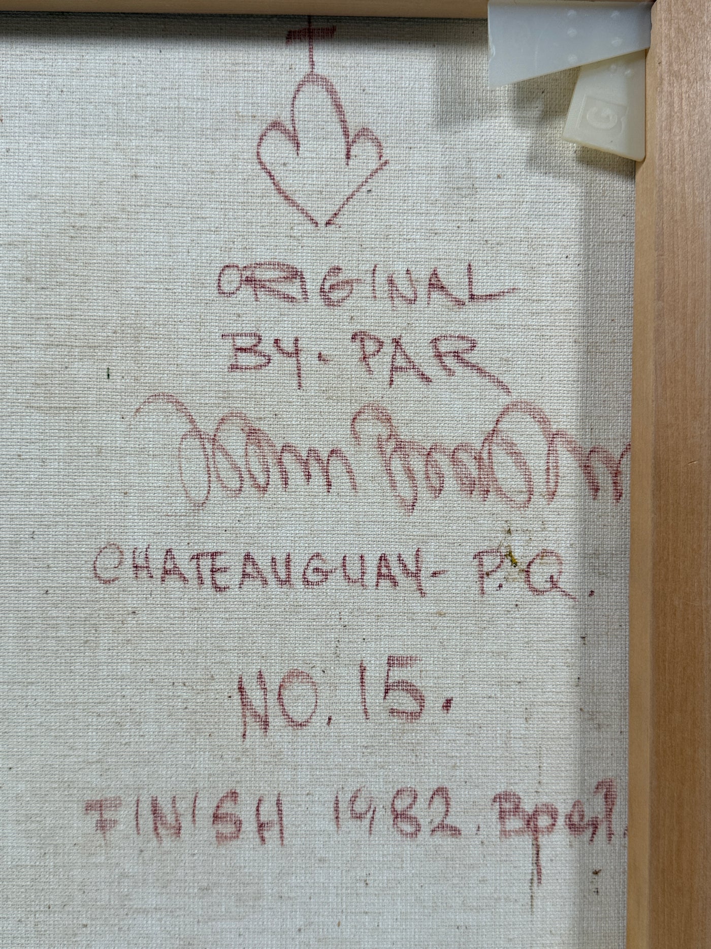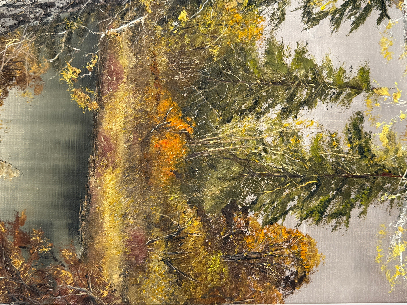 1982 Stan (István) Porubszky Oil Painting – Autumn Birch River Scene