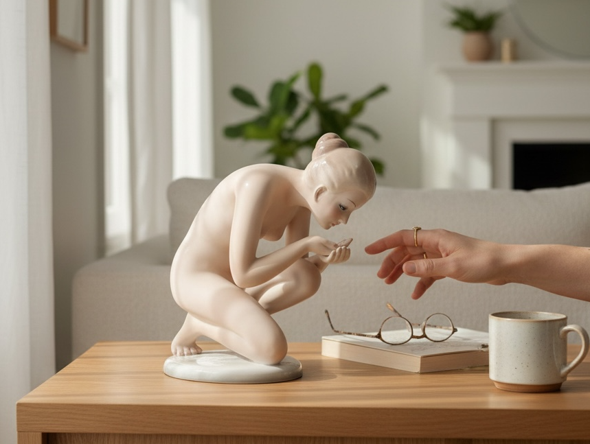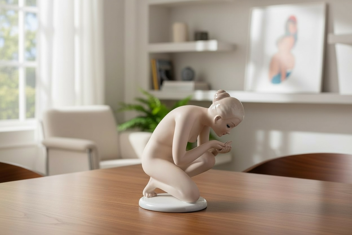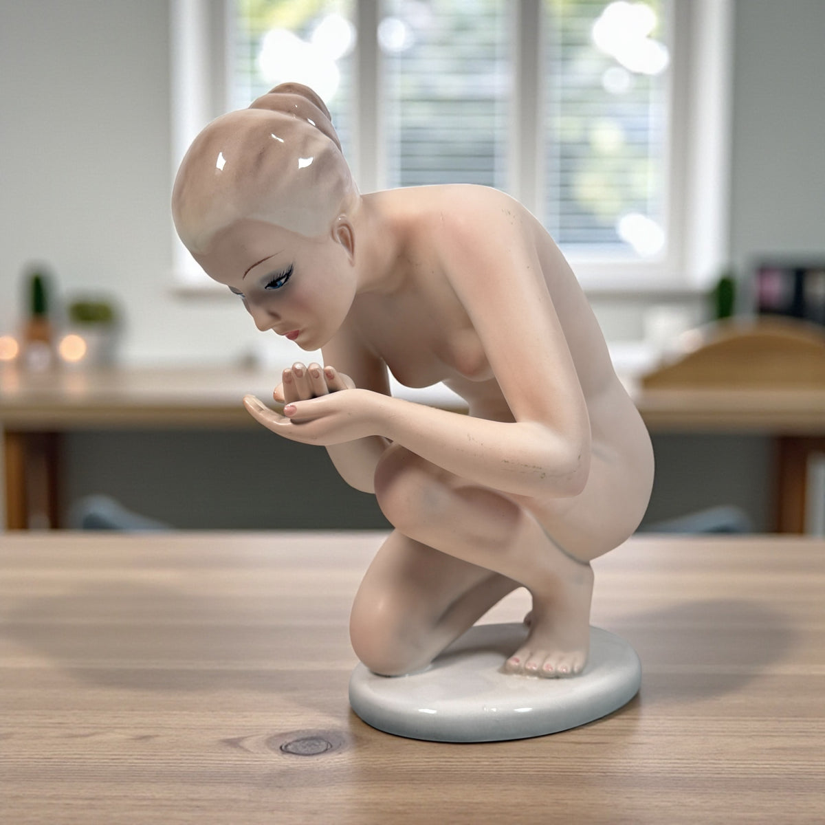 Herend Hungary Porcelain Figurine – Model 858 Kneeling Nude “Water Girl”
