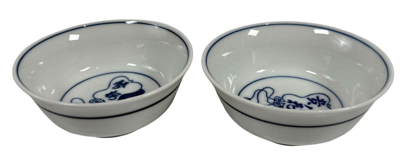 Set of 5 Japanese Blue & White Porcelain Rice Bowls