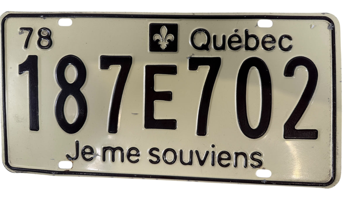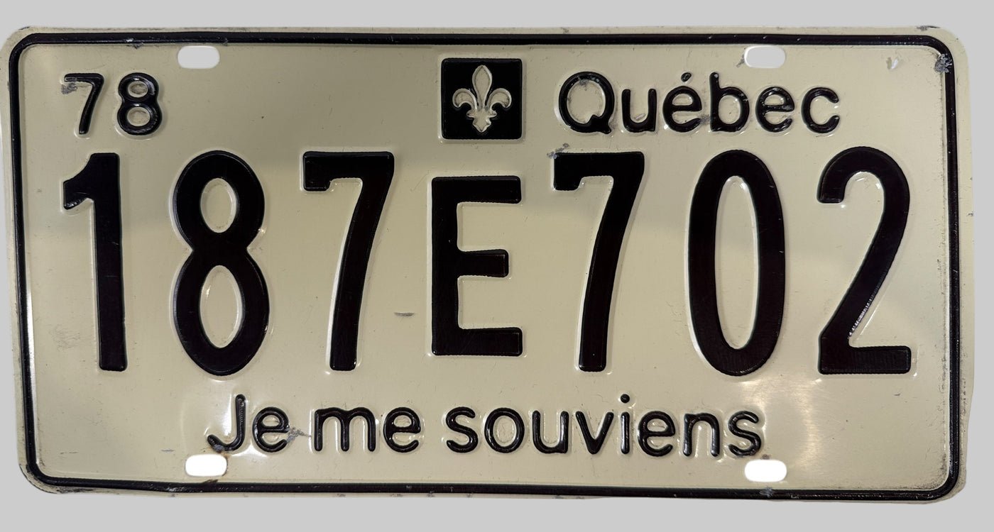 Vintage 1978 Québec Licence Plate – “Je me souviens” – Authentic Passenger Car Plate