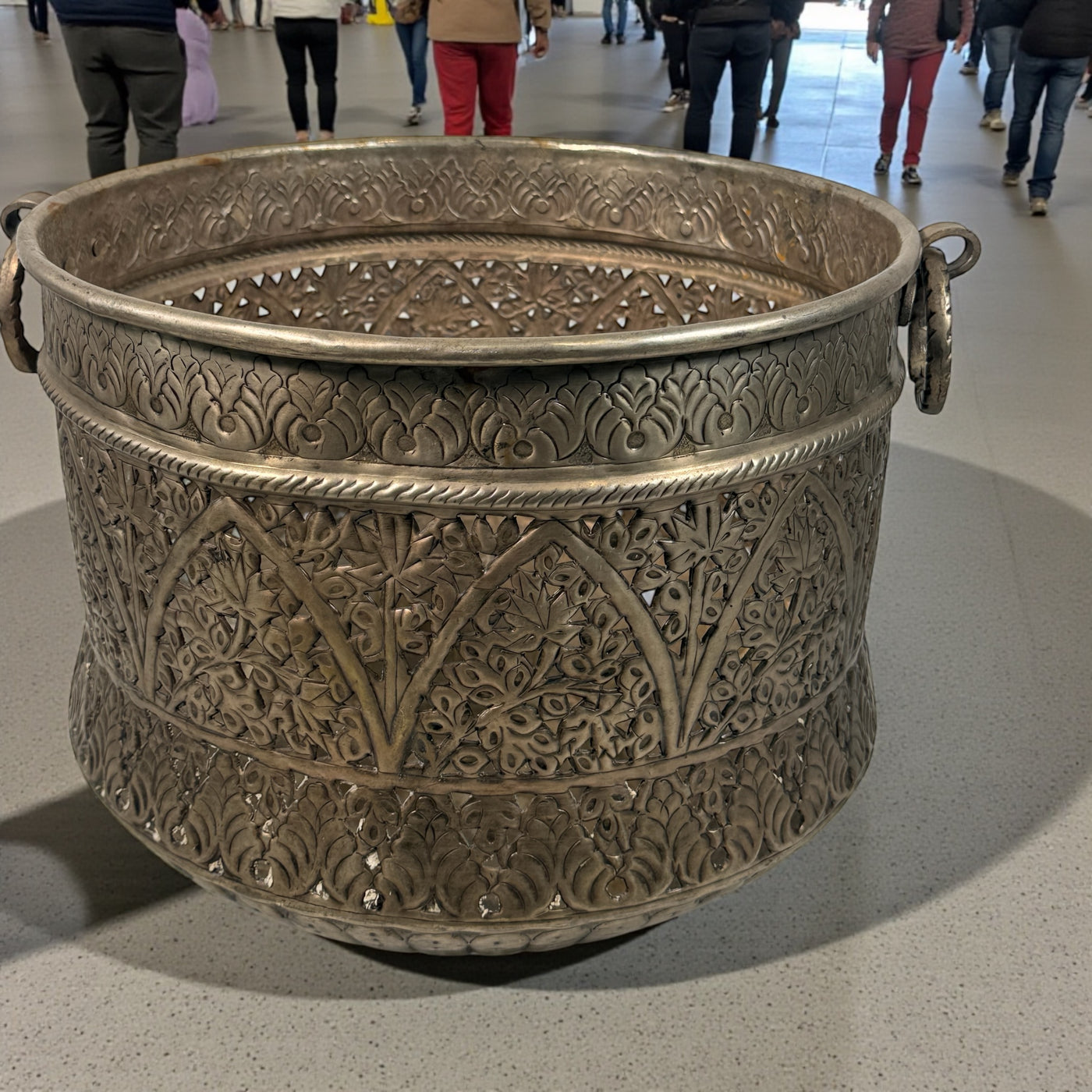 Vintage Hand-Pierced Indian Brass Planter – Dent on Side