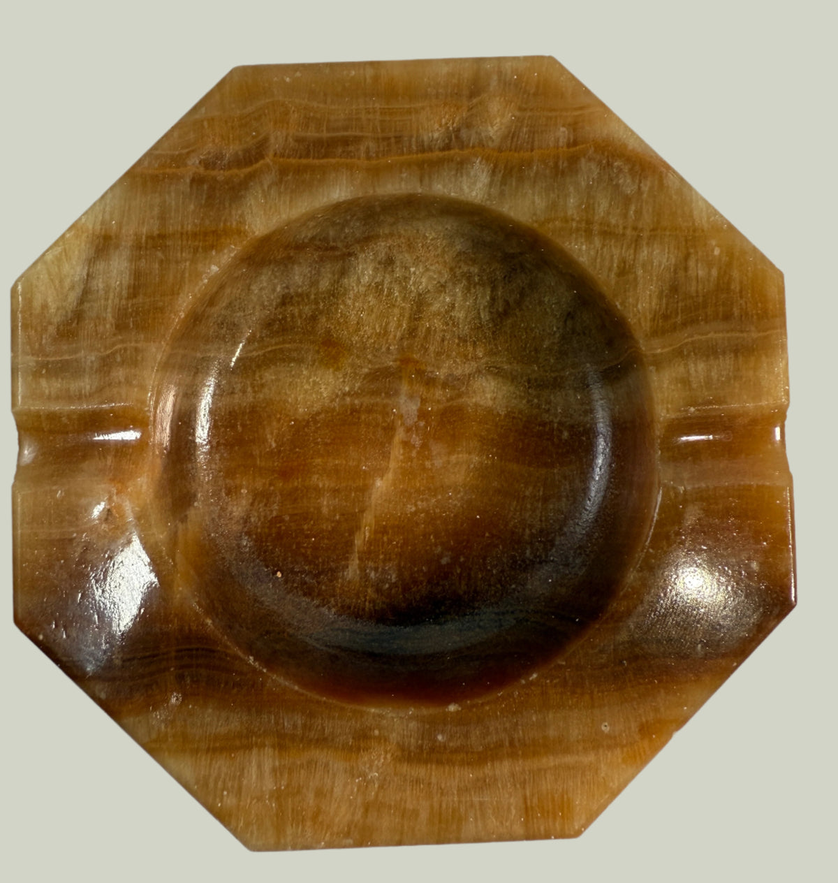 Vintage Onyx Ashtray – Octagonal Brown Stone Catchall