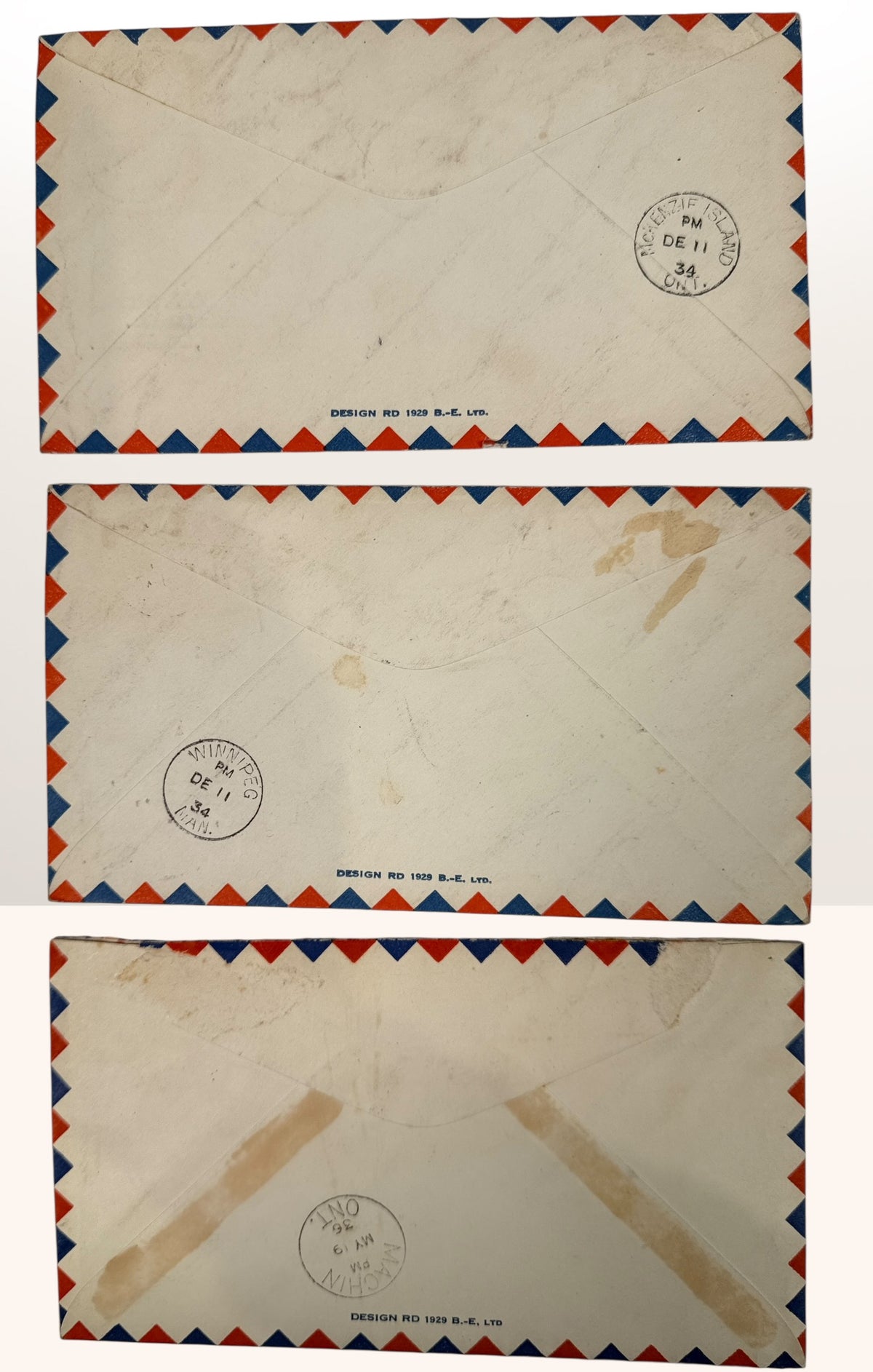 1934–1936 Canadian First Flight Airmail Covers, Ontario Routes, Set Of Three.