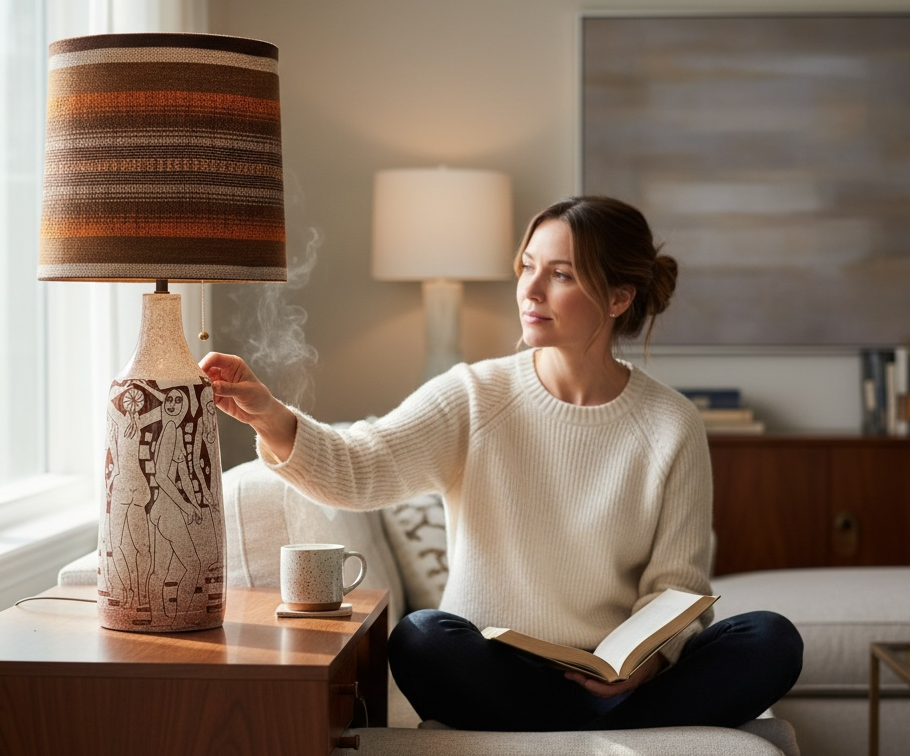 Mid Century Charles Sucsan Ceramic Lamp, Figural Nude Design.