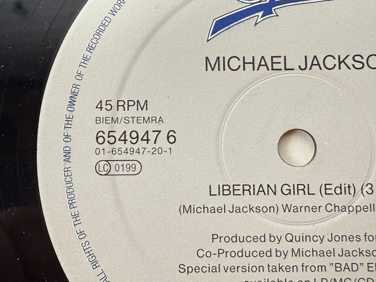 1987 Michael Jackson 12” – Liberian Girl Maxi-Single, Holland Pressing