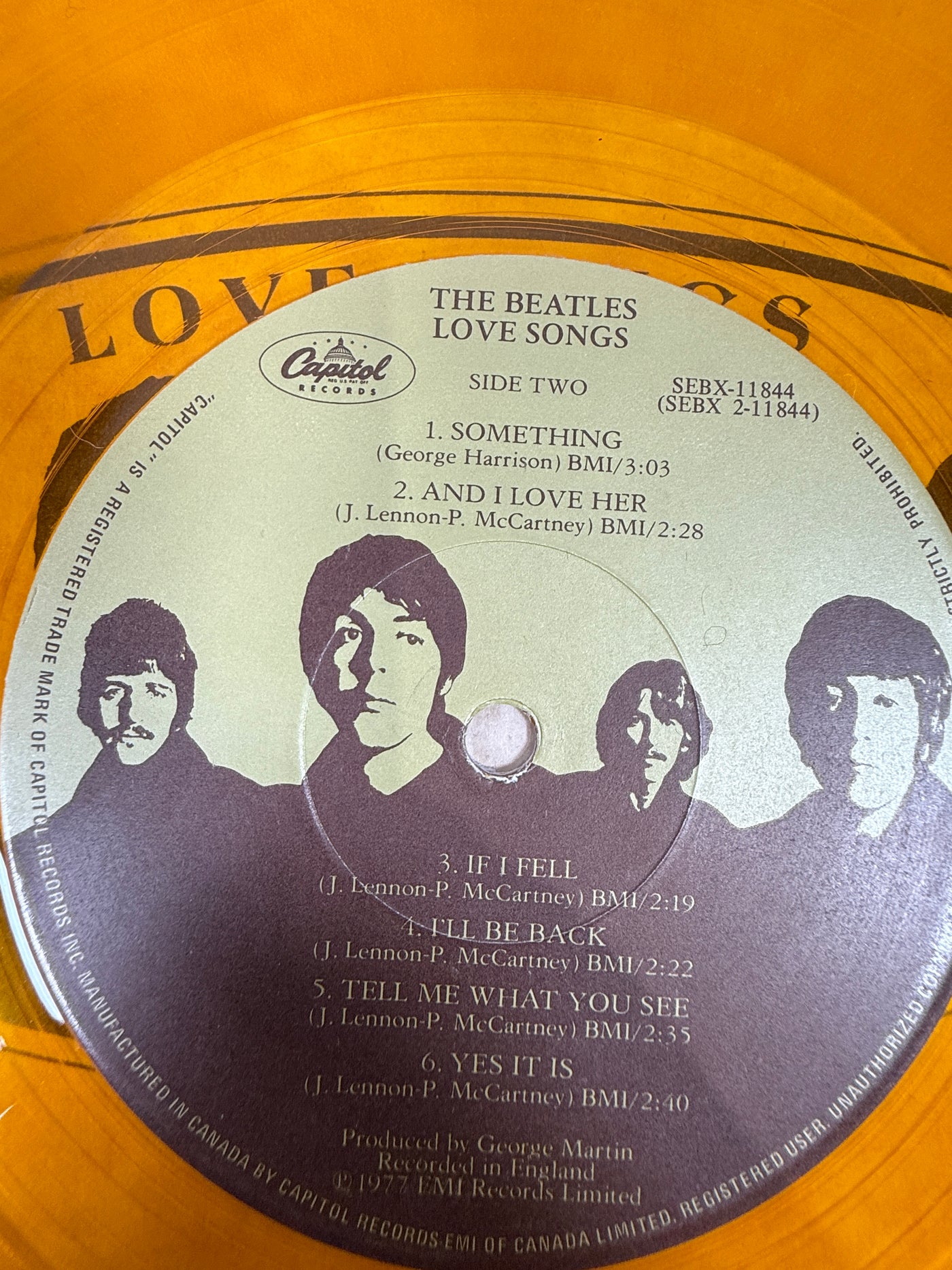 Beatles – Love Songs 1977 Amber Vinyl, Canada SEBX-11844, ALBUM VG+, Cover: G