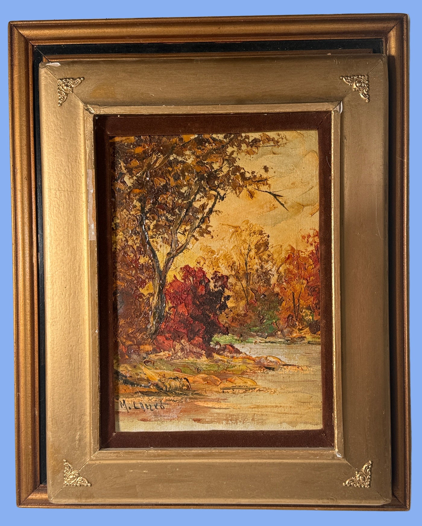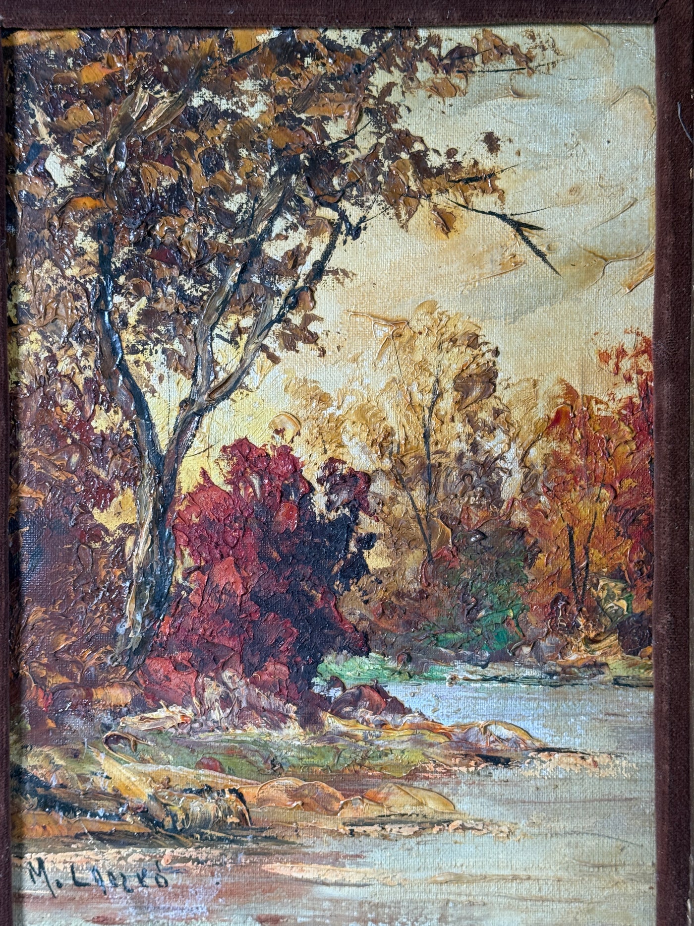 1950s Hungarian Oil Landscape – M. Laczko Autumn River Scene