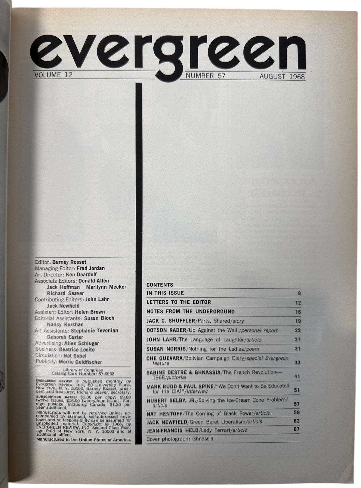 Evergreen Review No. 57, Aug 1968, – Che Guevara’s Diary