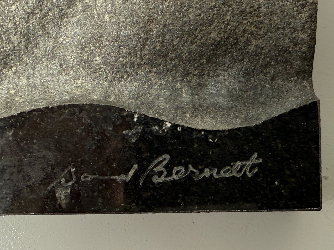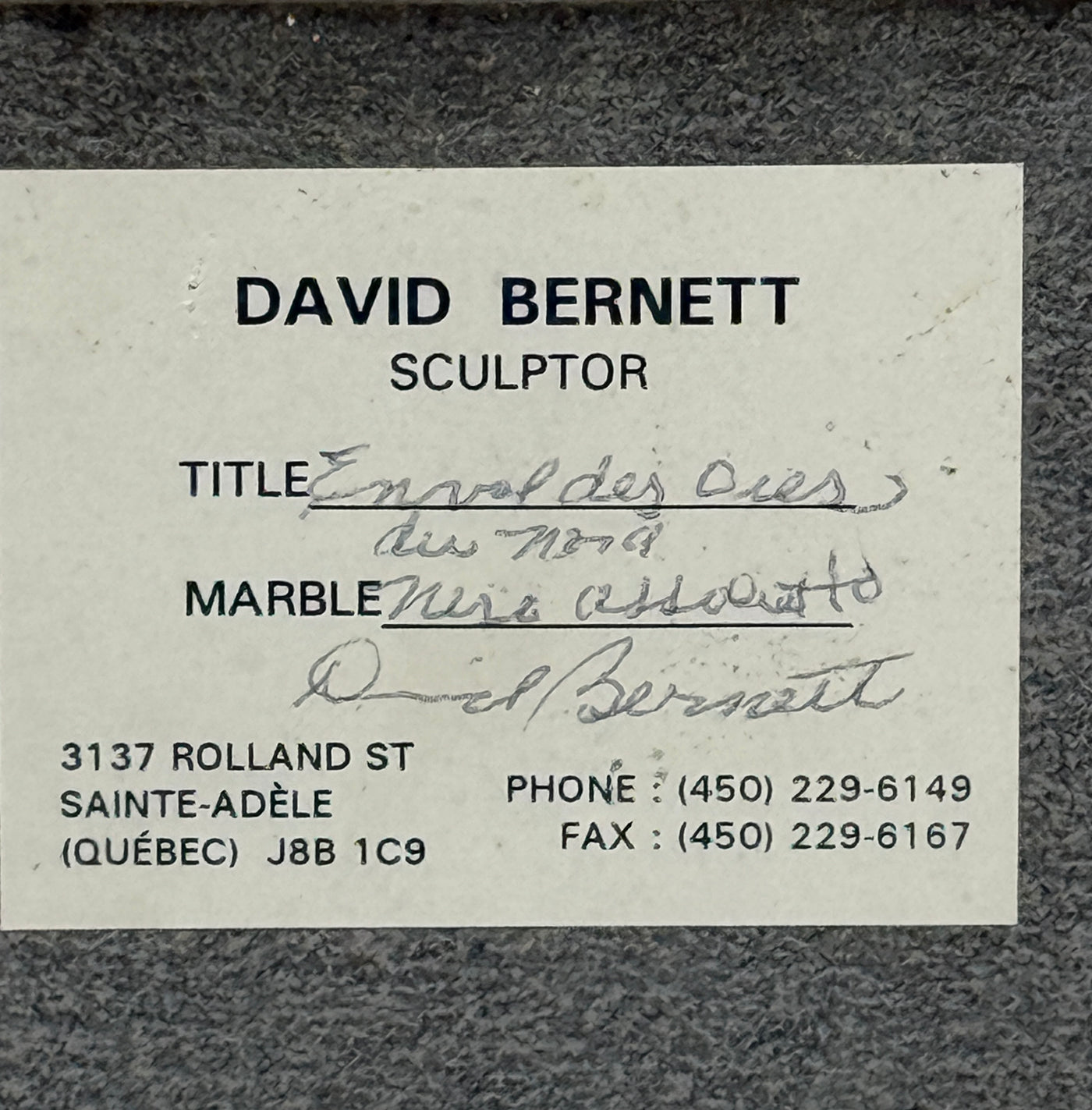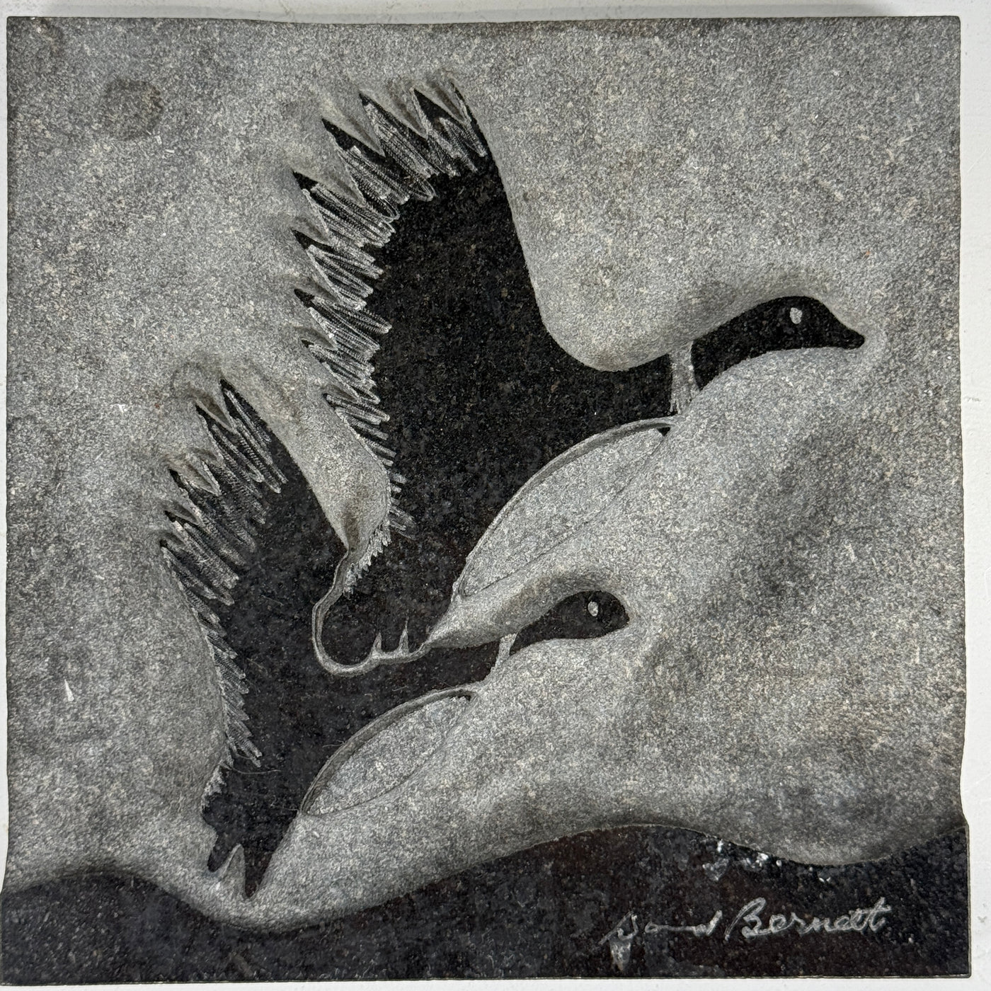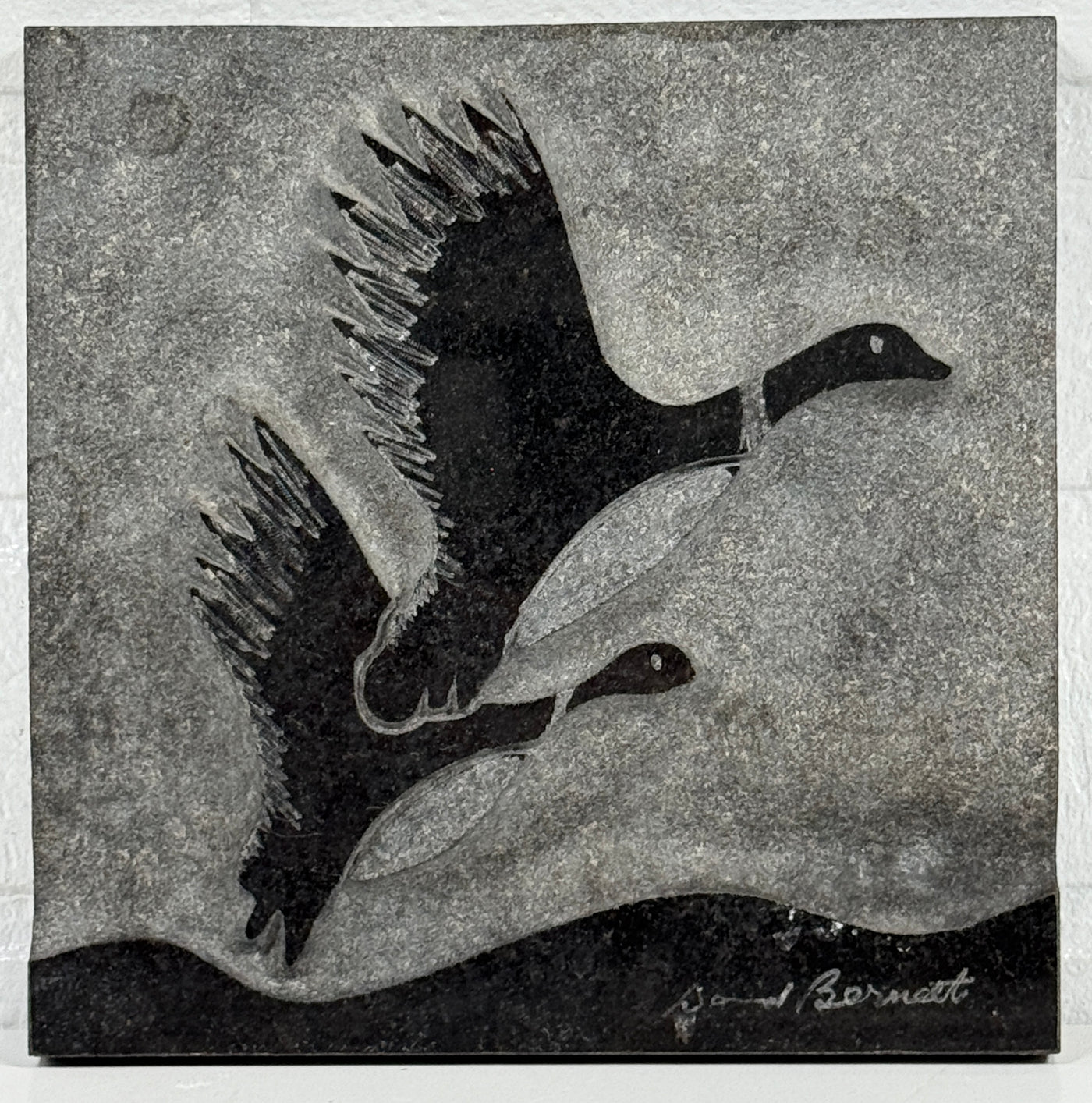 “Flight of the Marsh Geese” Marble Relief by Canadian Sculptor David Bernett – Signed, Noir Absolut Marble