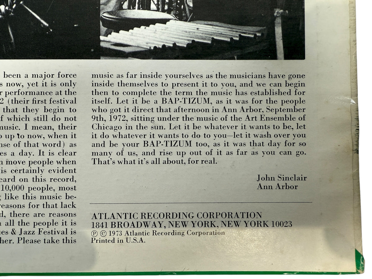 1973 Art Ensemble of Chicago – Bap-Tizum Live LP, SD-1639 (Atlantic), VG+/VG+
