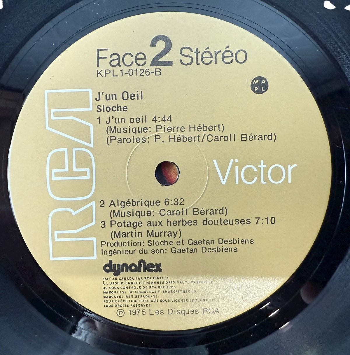 1975 Sloche – J’un Oeil LP (RCA Victor KPL1-0126 Canada, VG+/VG)