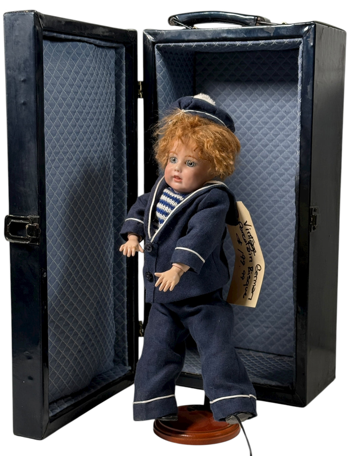 Antique Bisque Head Sailor Boy Doll – Marked “JLC” – Hand-Knit Outfit