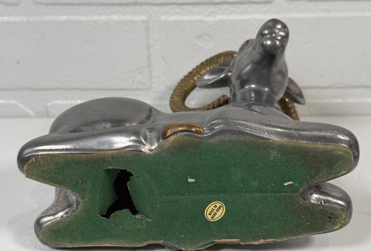 Art Deco Pewter & Brass Ram Bookend – Vintage Hong Kong