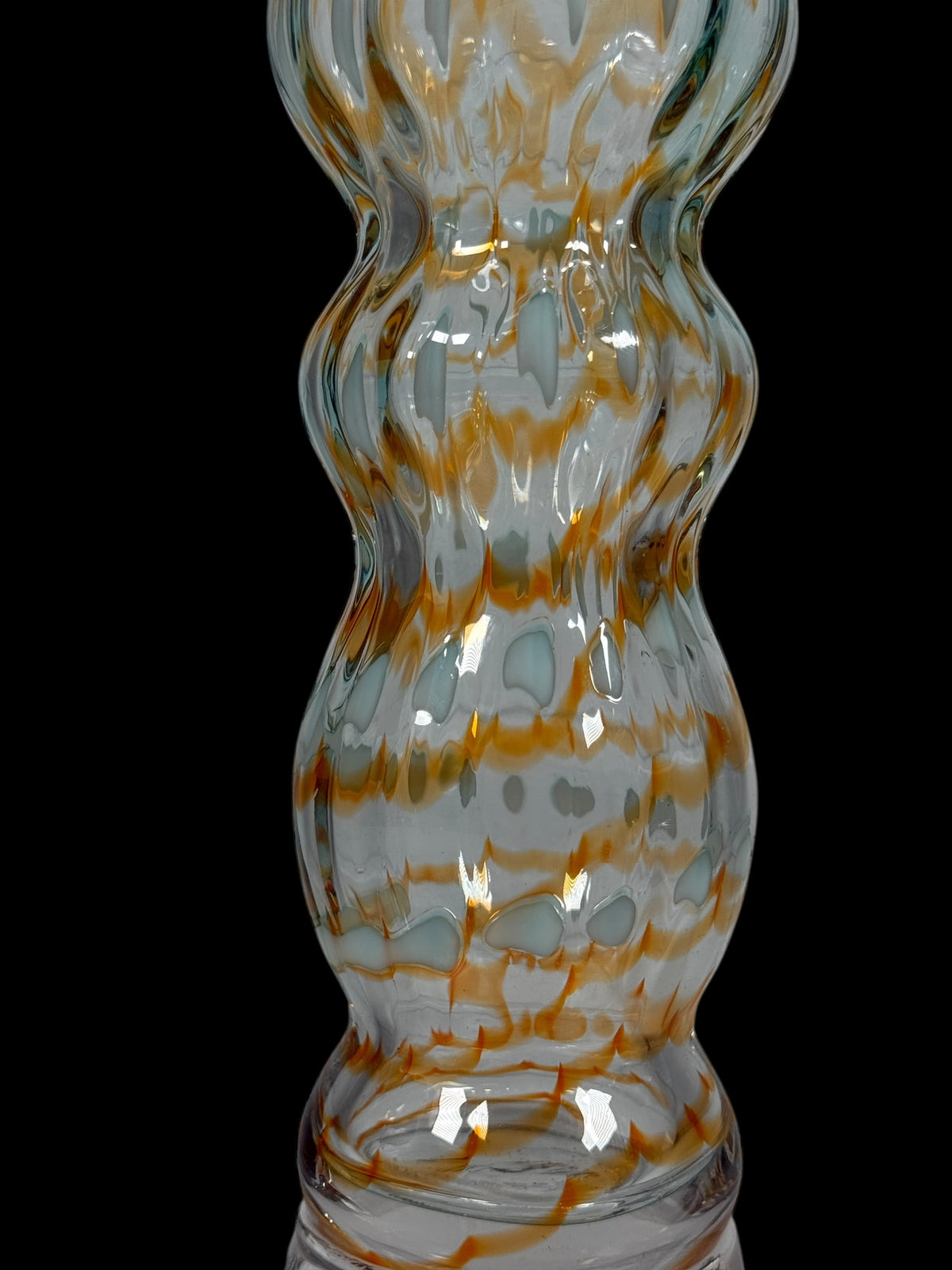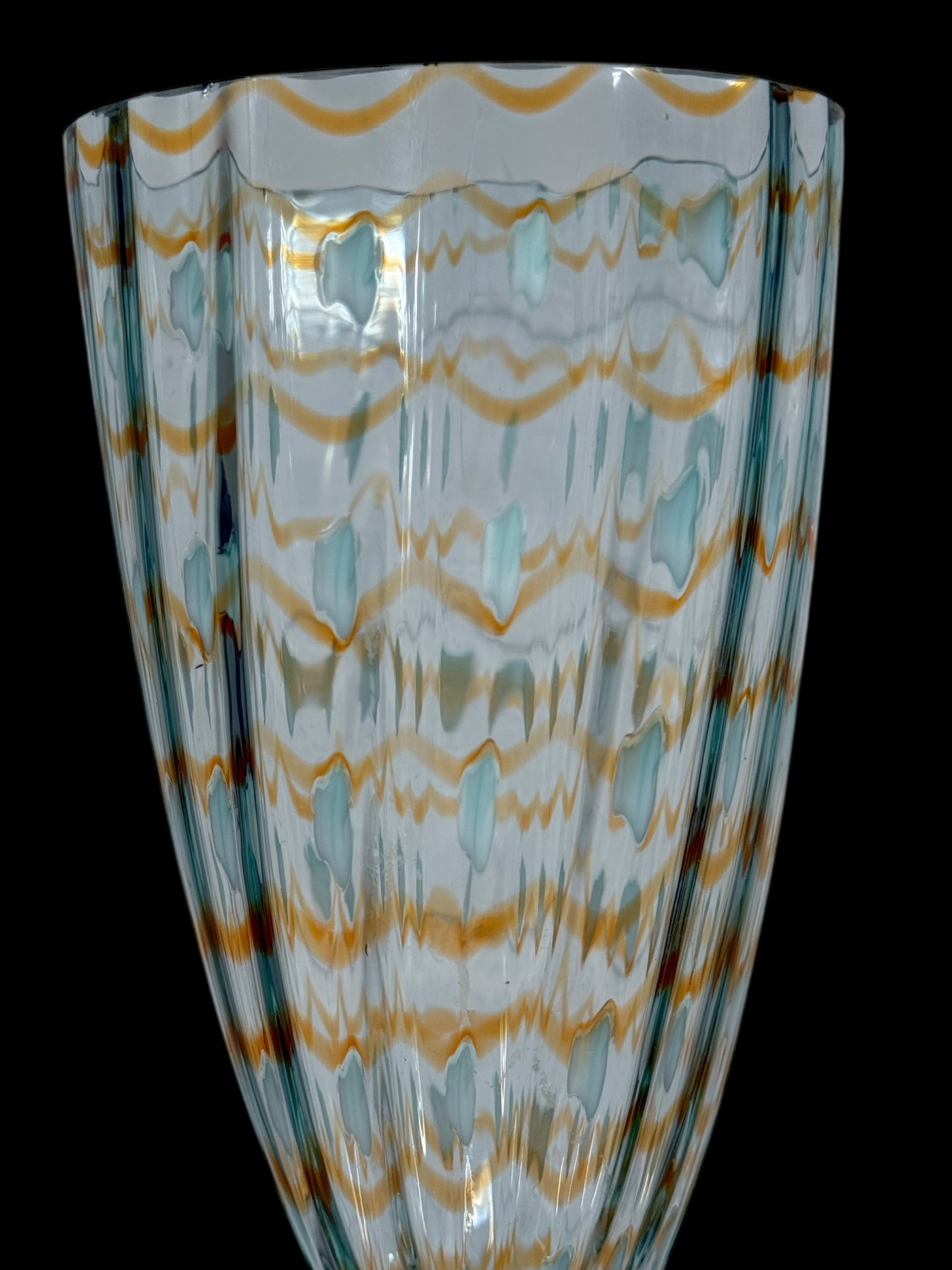 Large 15.5” Murano-Style Art Glass Vase – Gold & Enamel Optic Ribbed – Handblown Studio Glass