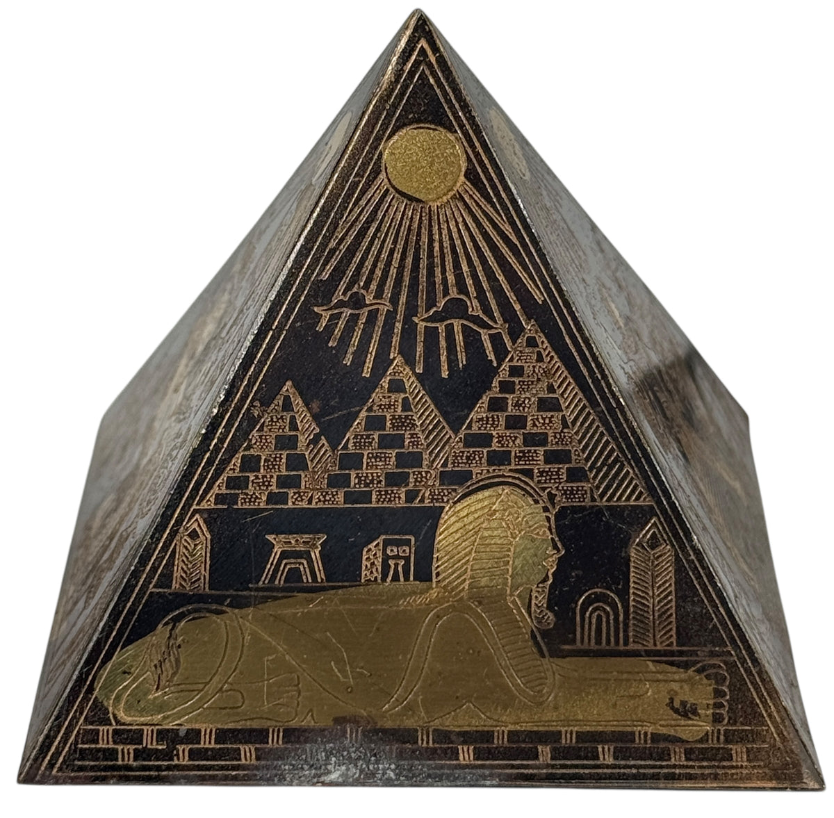 Set of 3 Etched Egyptian Pyramids Ornament Metal Desk decor Vintage