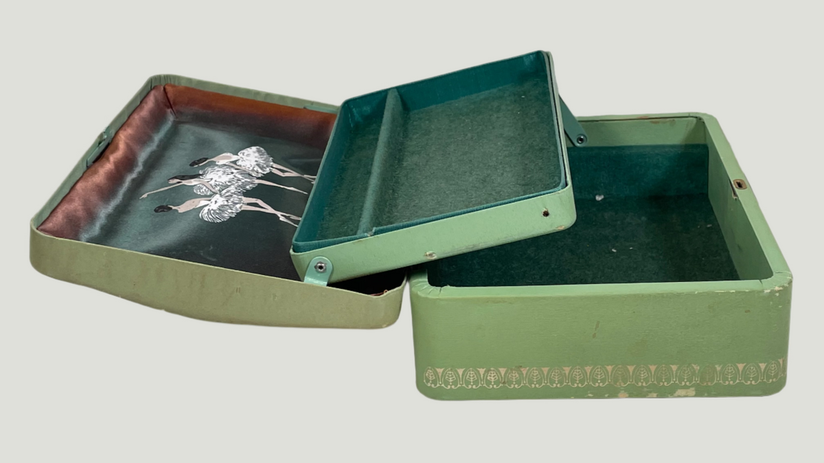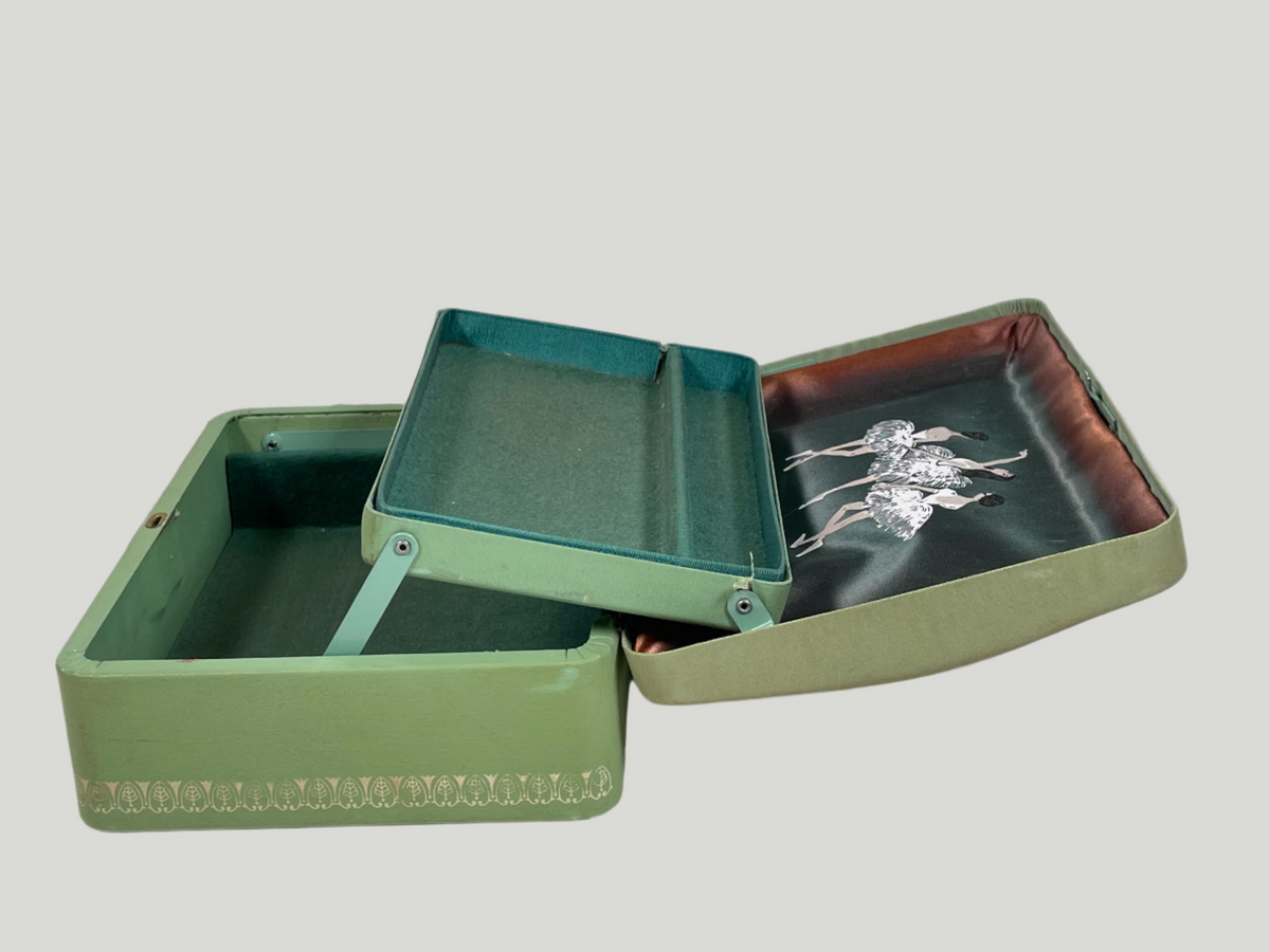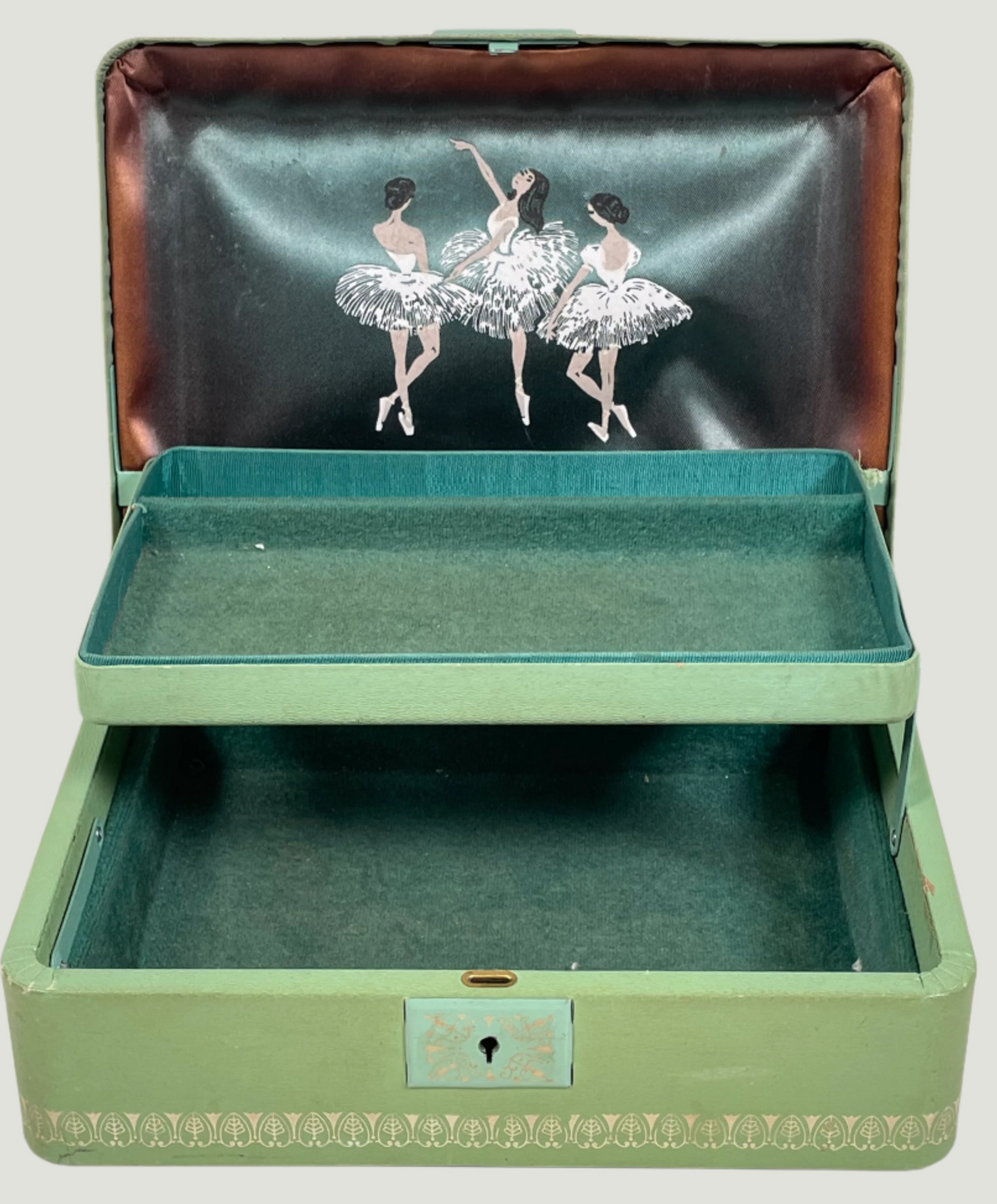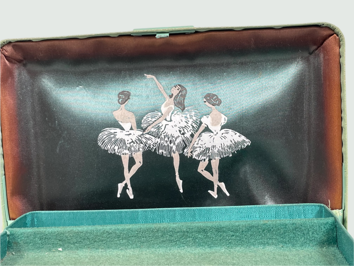 Vintage 1950s Farrington Green, Jewelry Box, Ballerina Motif Interior.