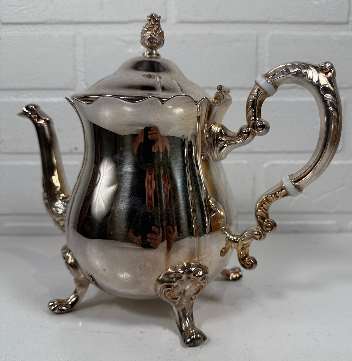 Théière Leonard en métal argenté du milieu du siècle – Motif à griffes orné