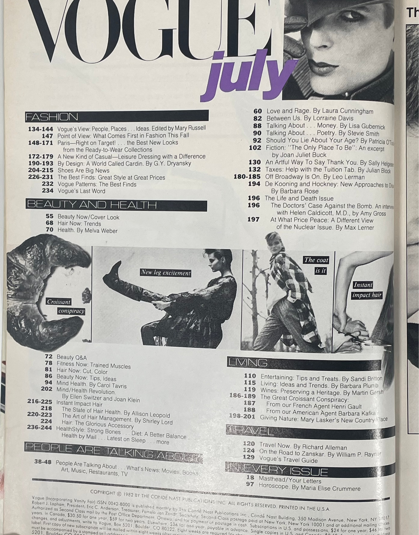 Vintage Vogue Magazine juillet 1982 Nastassja Kinski. Objet de collection