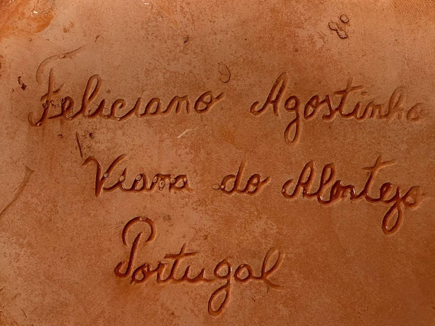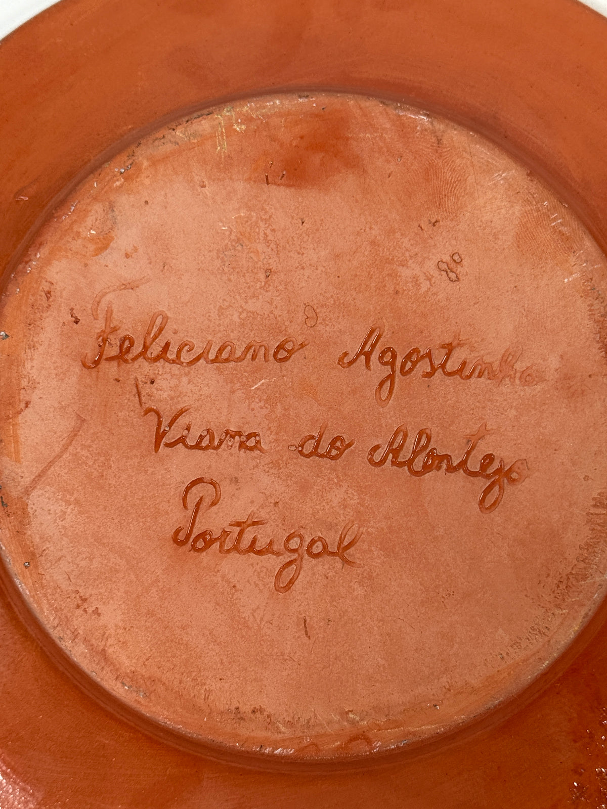 Assiette de présentation Feliciano Agostinho peinte à la main – Viana do Alentejo Portugal – Terre cuite signée