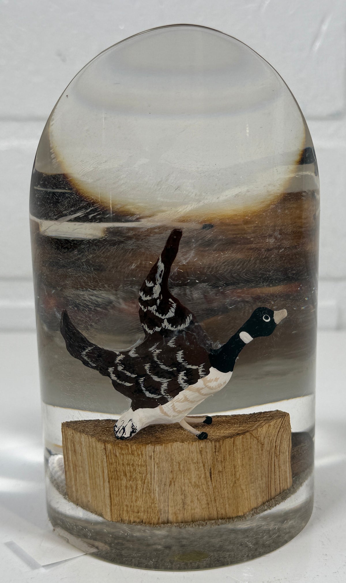 Presse-papier en résine, scène d'oiseaux nautiques en Lucite du milieu du siècle