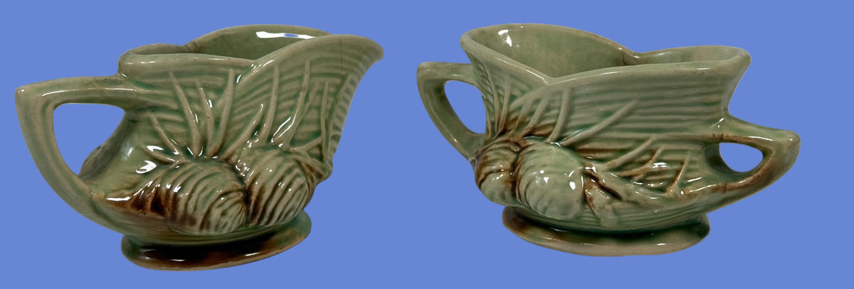 Pot à crème et sucrier McCoy en forme de pomme de pin des années 1940 – Vert-brun