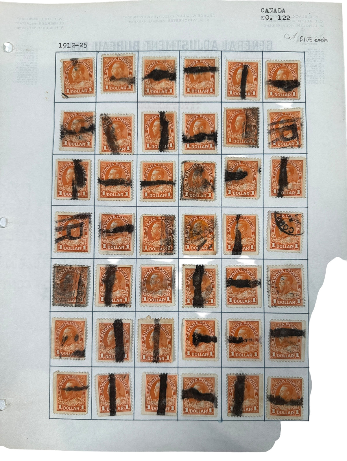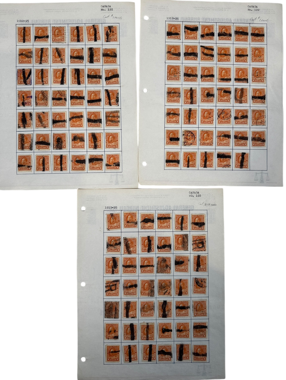 1912–25 Canada $1 King George V Stamps – 3 Fiscal-Cancelled Sheets