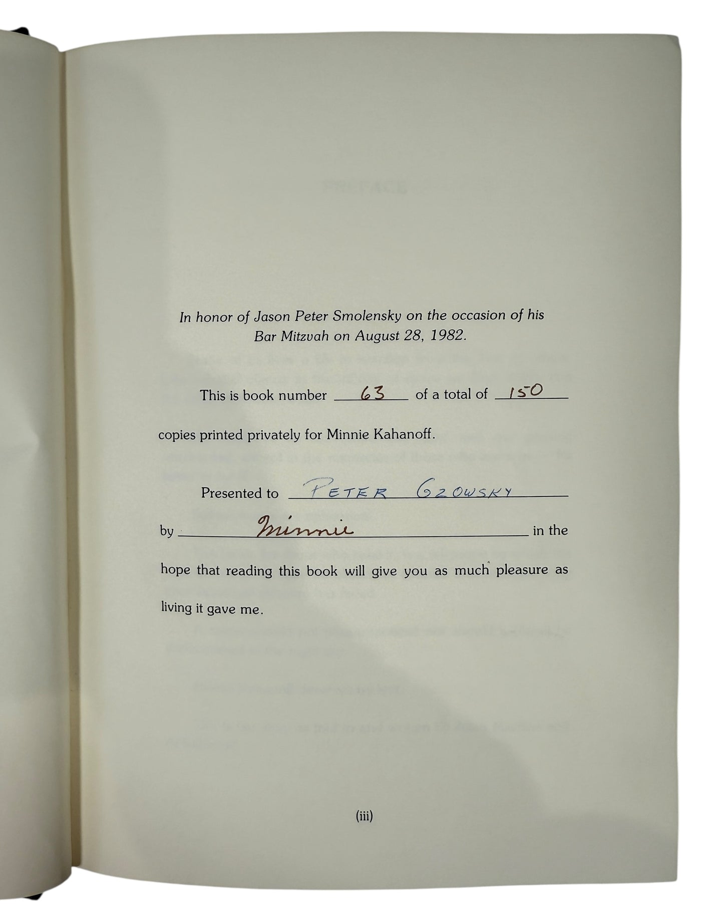 1982 Limited Jewish Memoir Hardcover – L’Chaim, Minnie Kahanoff, Signed #63 / 150