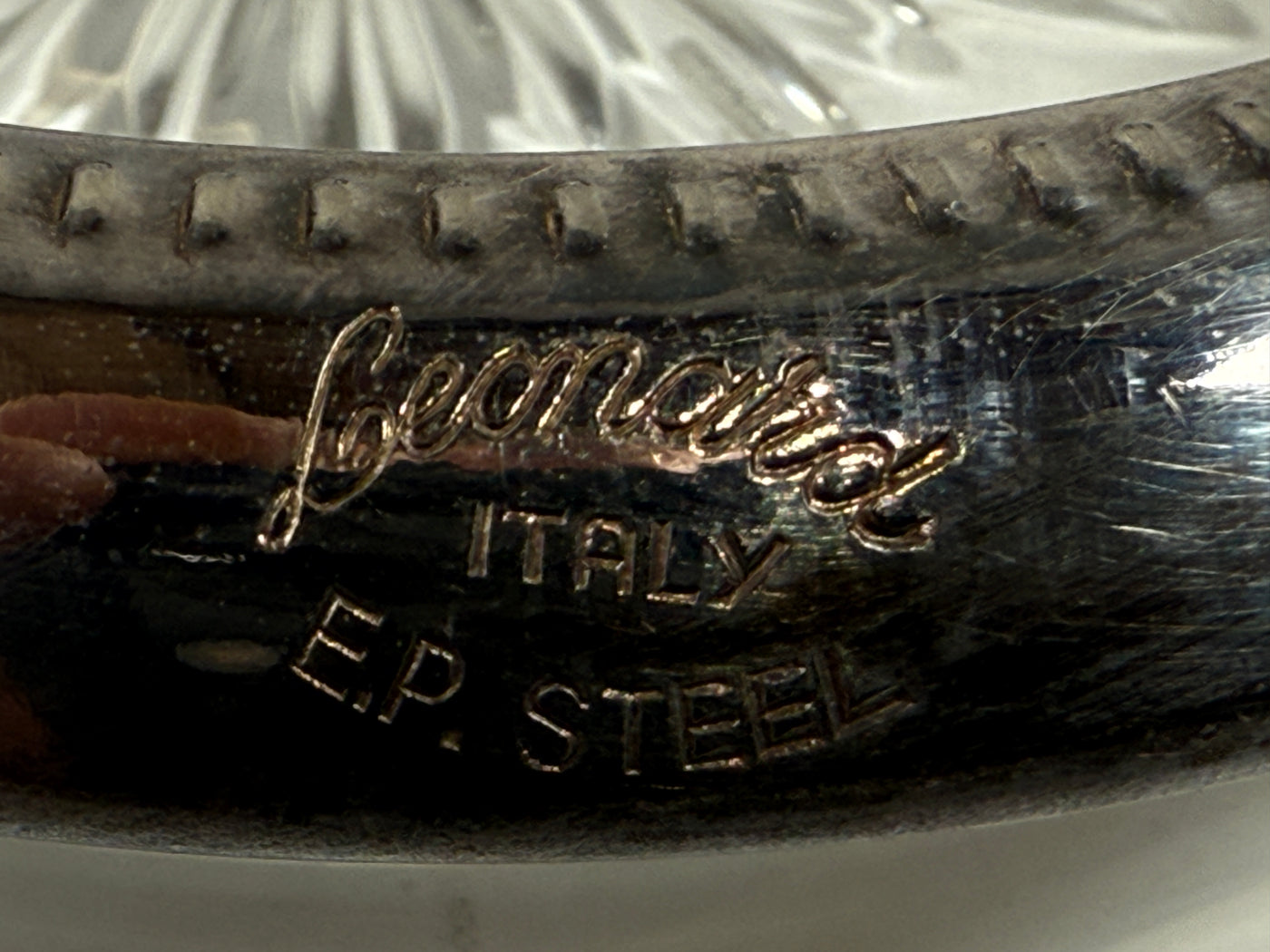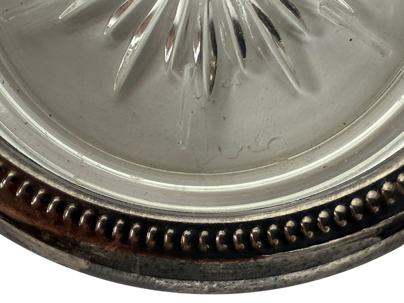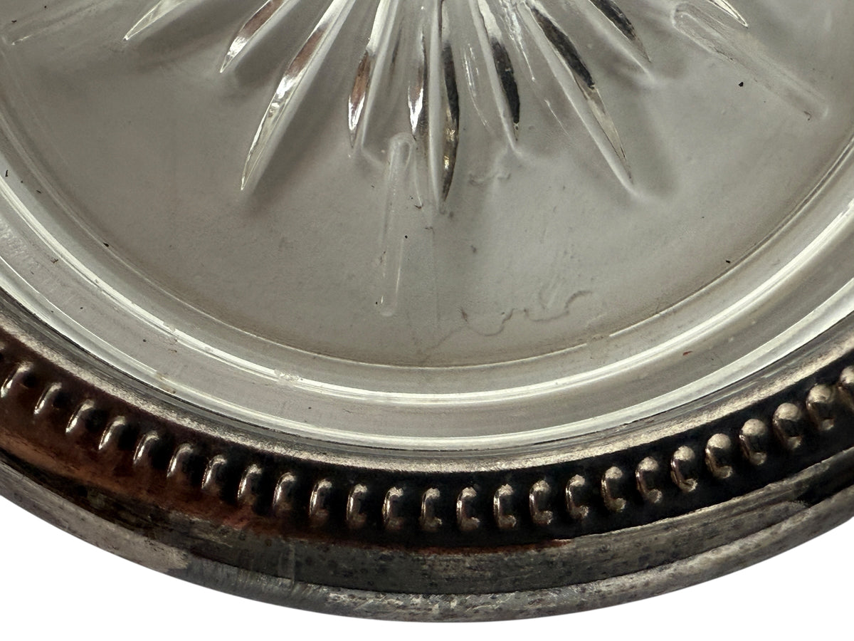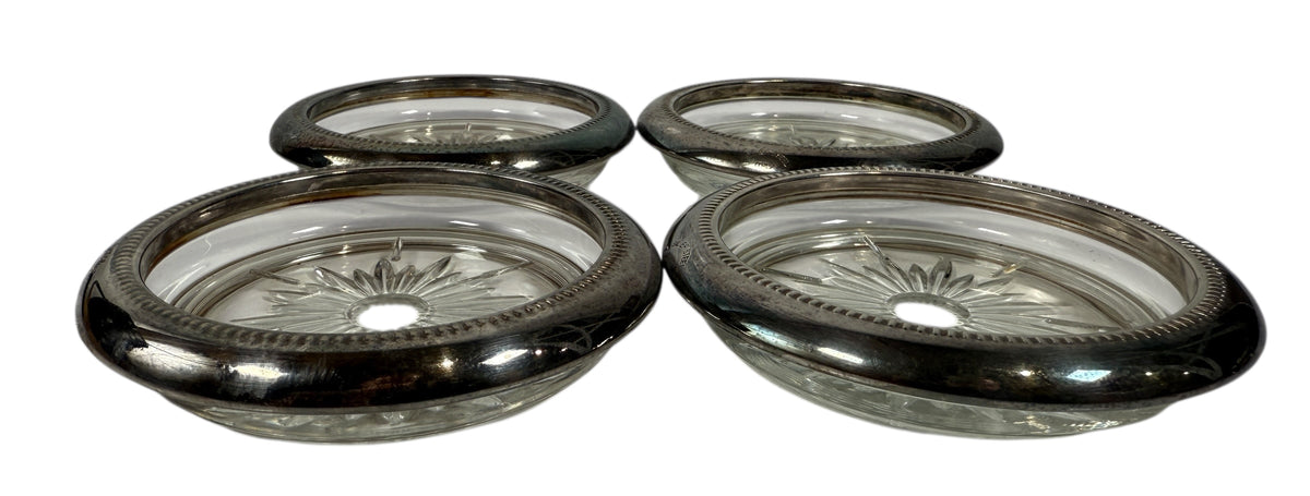 4 Vintage Leonard Old Crystal Glass Drink Coasters Made In Italy Silver Plated