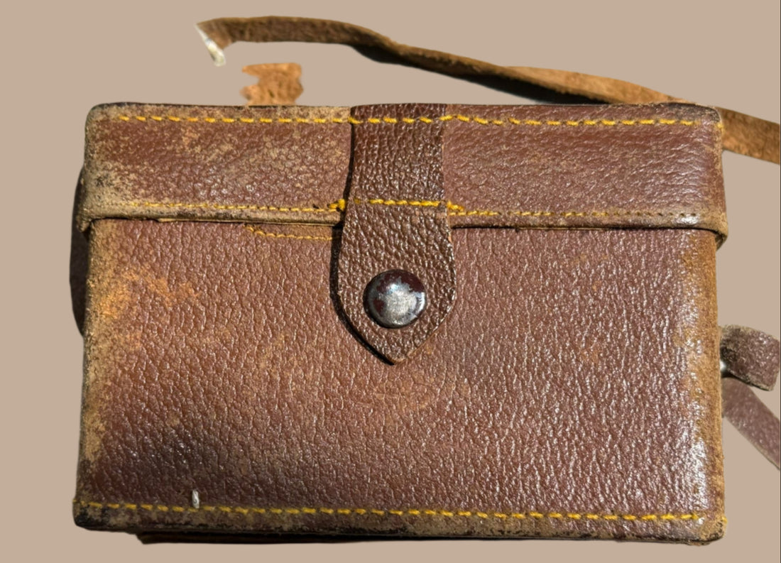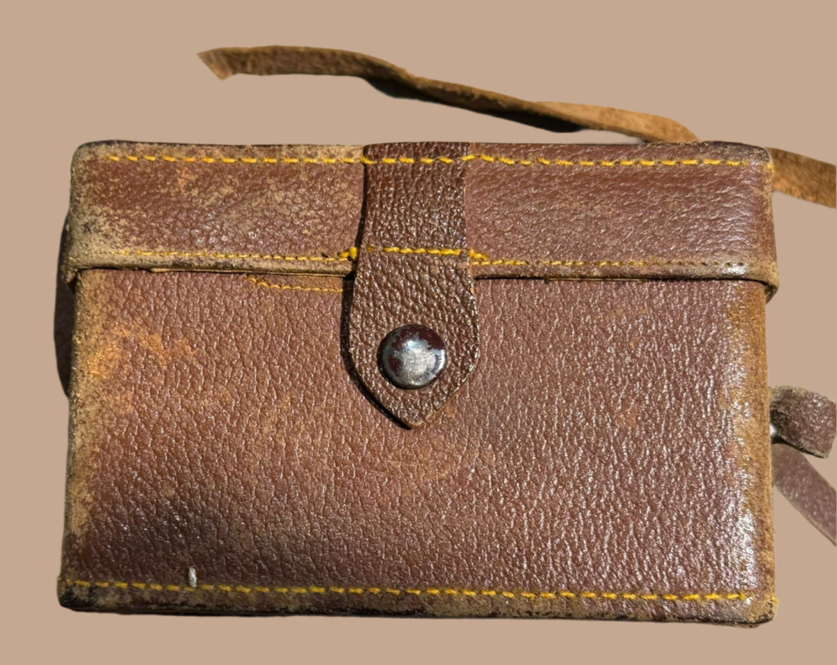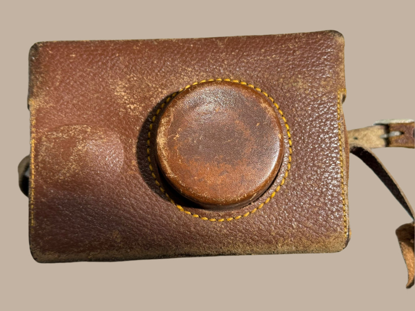• Case: Includes original vintage leather case with strap (worn but intact)