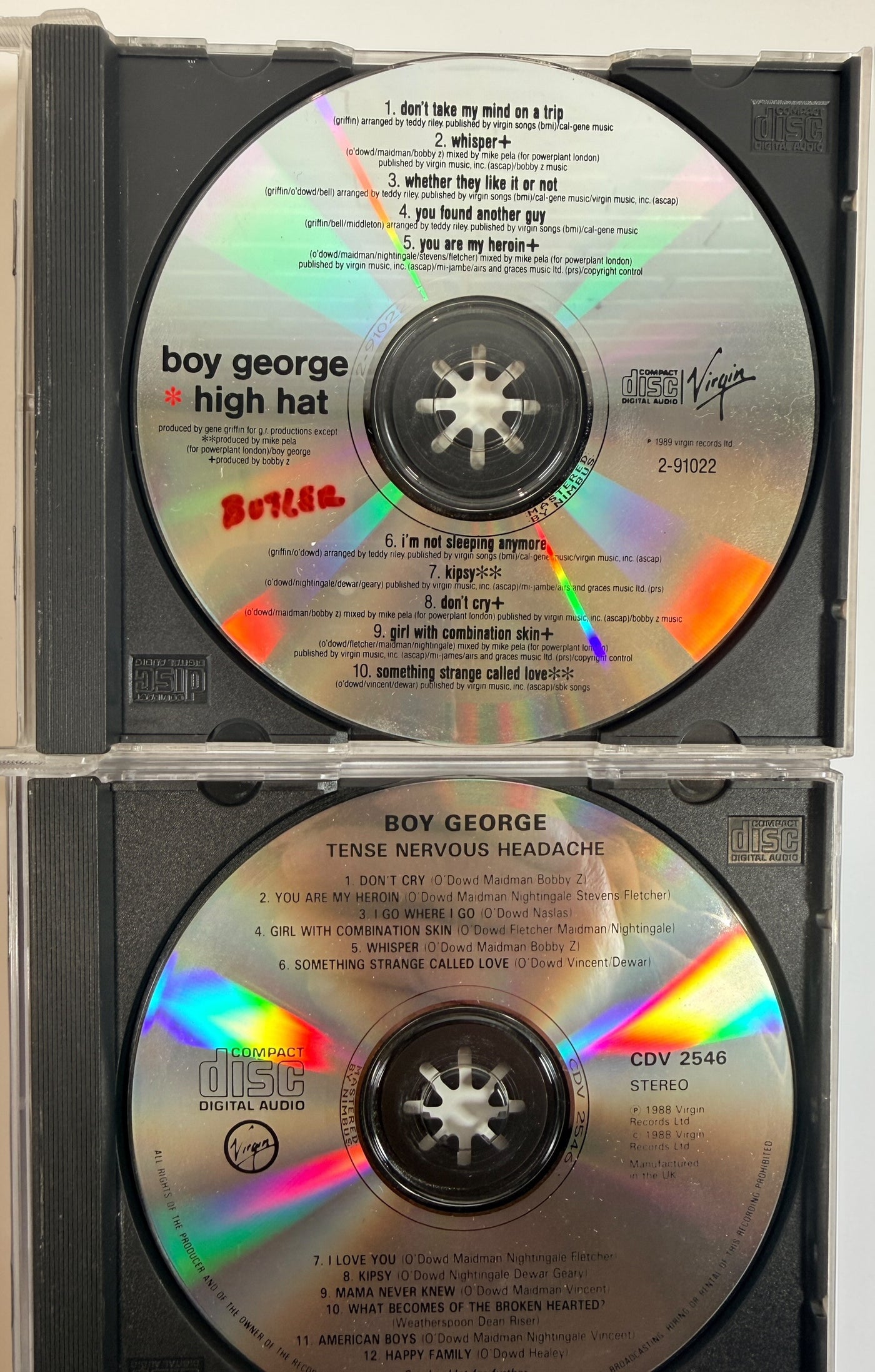 Boy George, High Hat, Tense Nervous Headache CDs, Virgin Records. Pair of CDs
