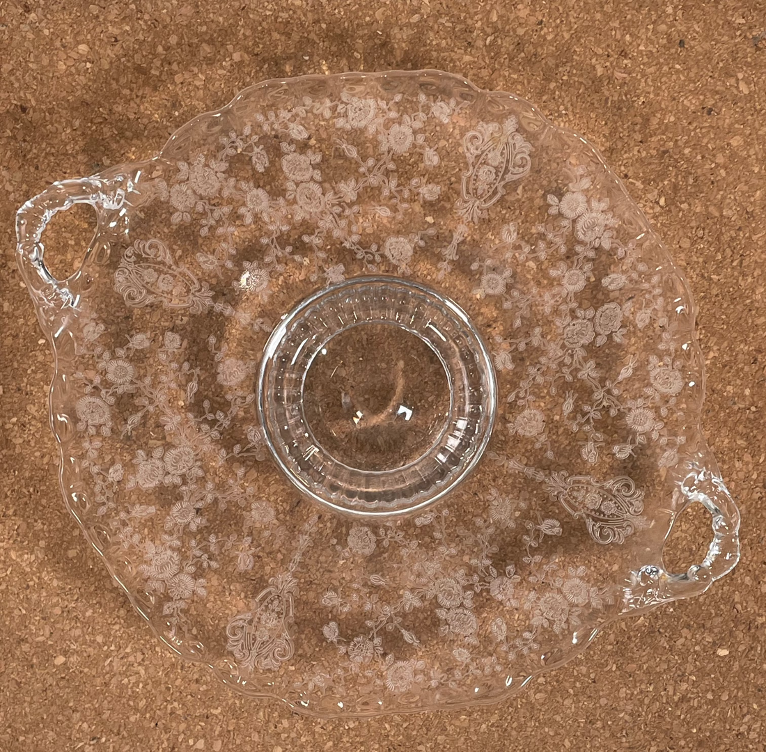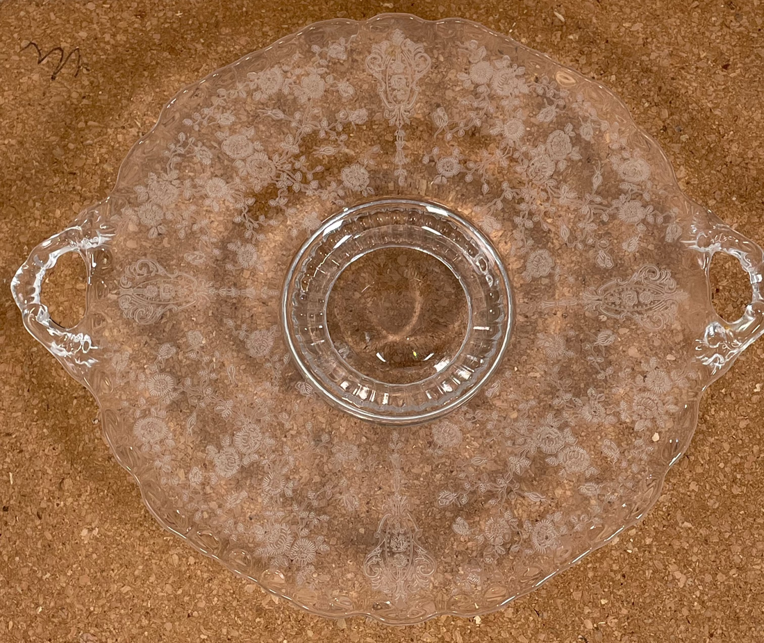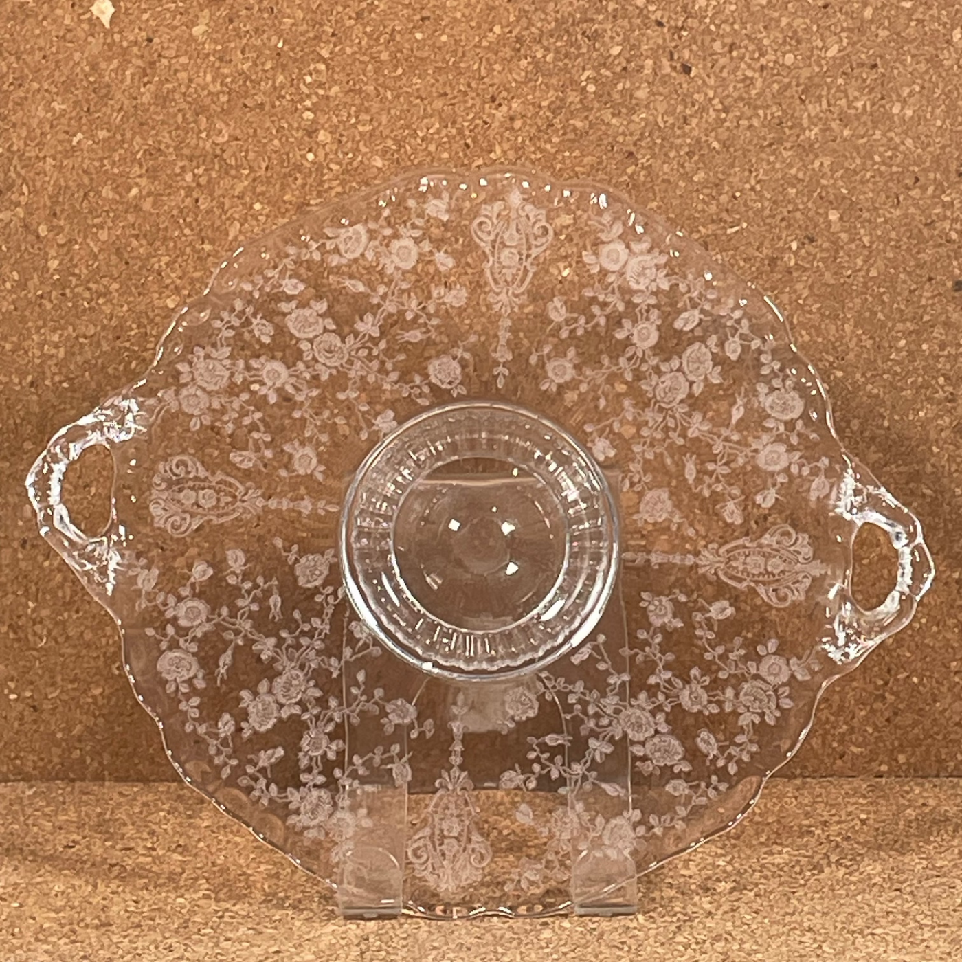 Cambridge Rose Point 9 1/4" Bon Bon Stunning Vintage Serving Plate W/Handles