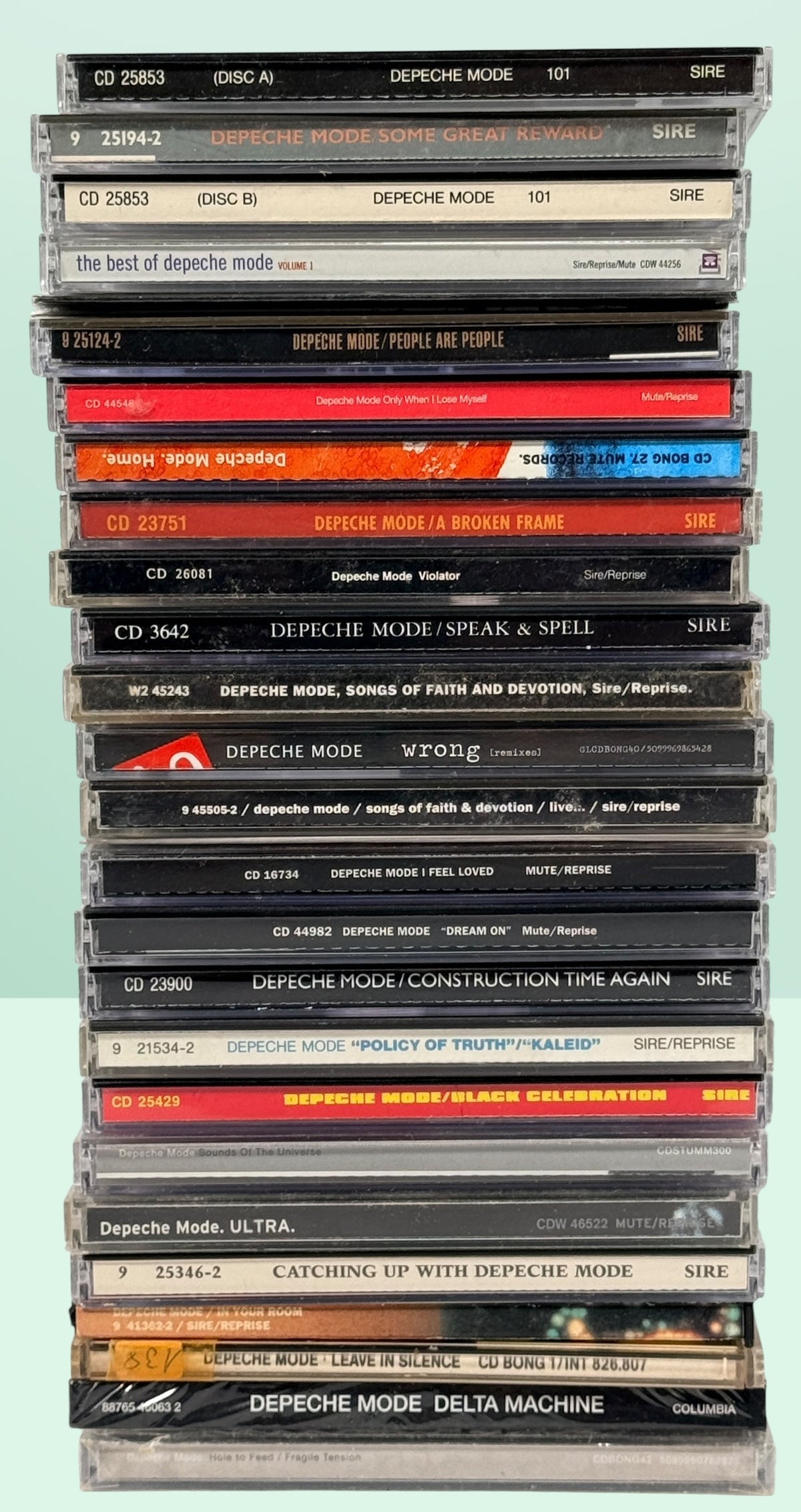Complete Depeche Mode CD collection lot featuring approximately 28 discs spanning studio albums, live releases, compilations, and maxi singles. Strong mix of 1980s through 2010s material. Includes several sealed copies.