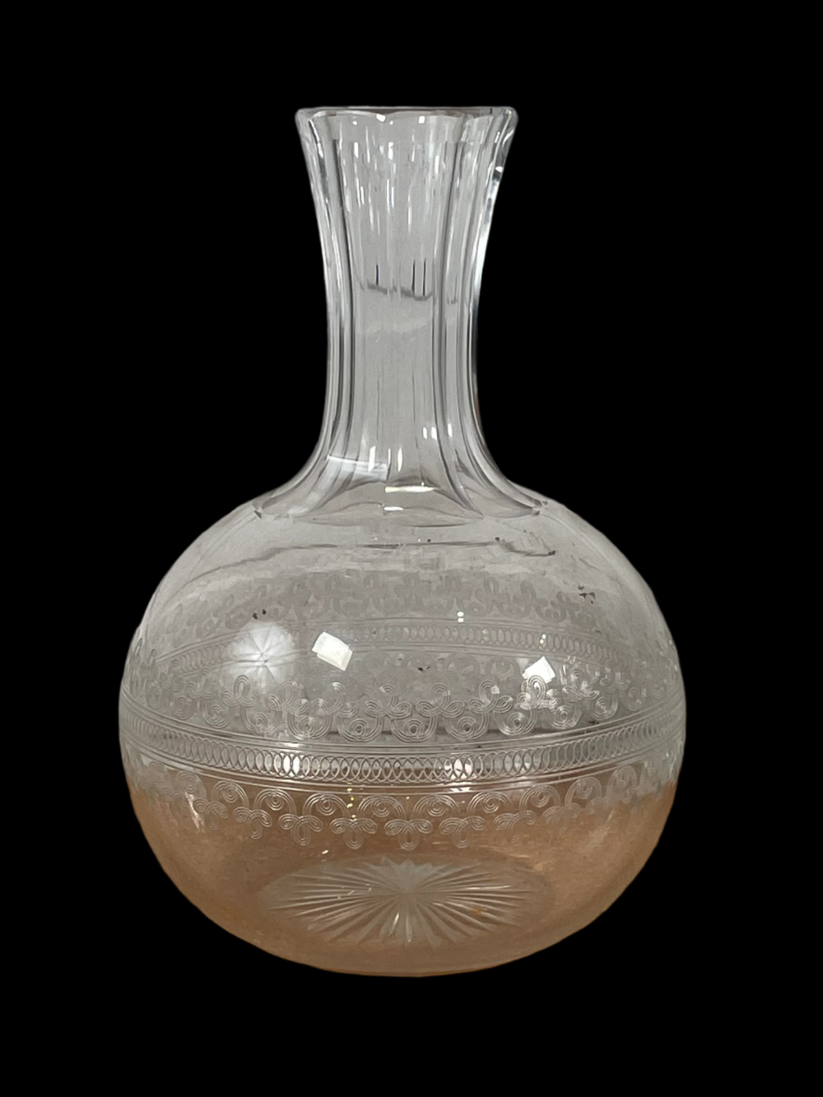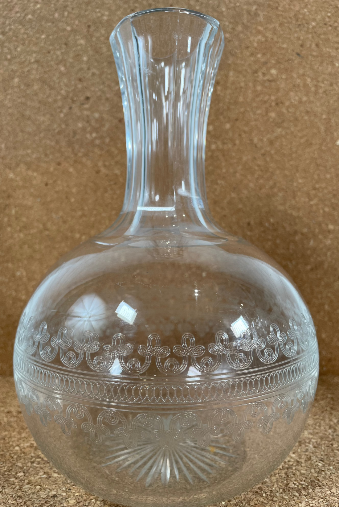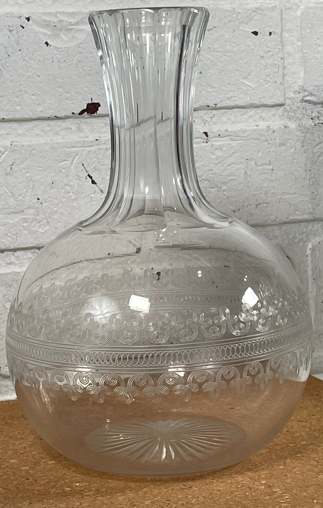 Fostoria Cloverleaf ? Decanter Carafe Water Bottle 8 3/4" Tall Etched "Abiah"