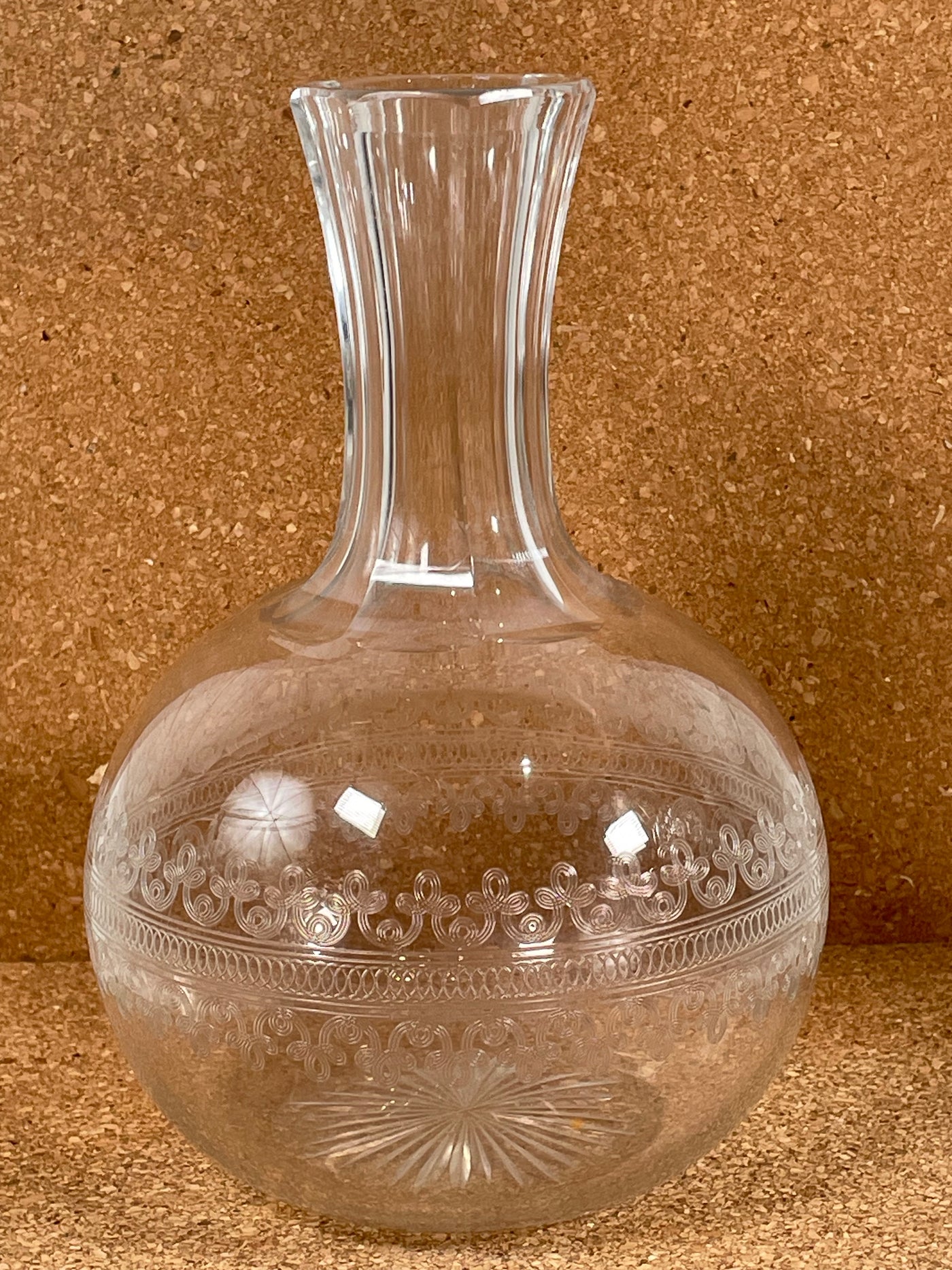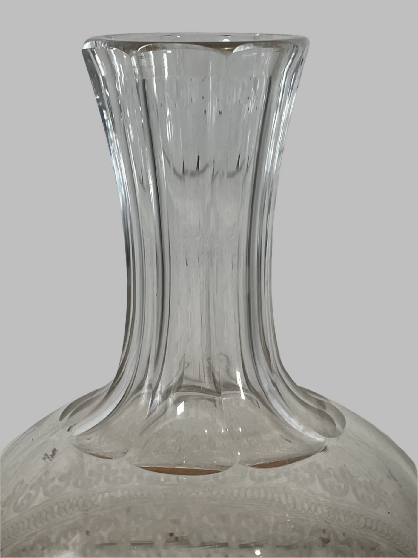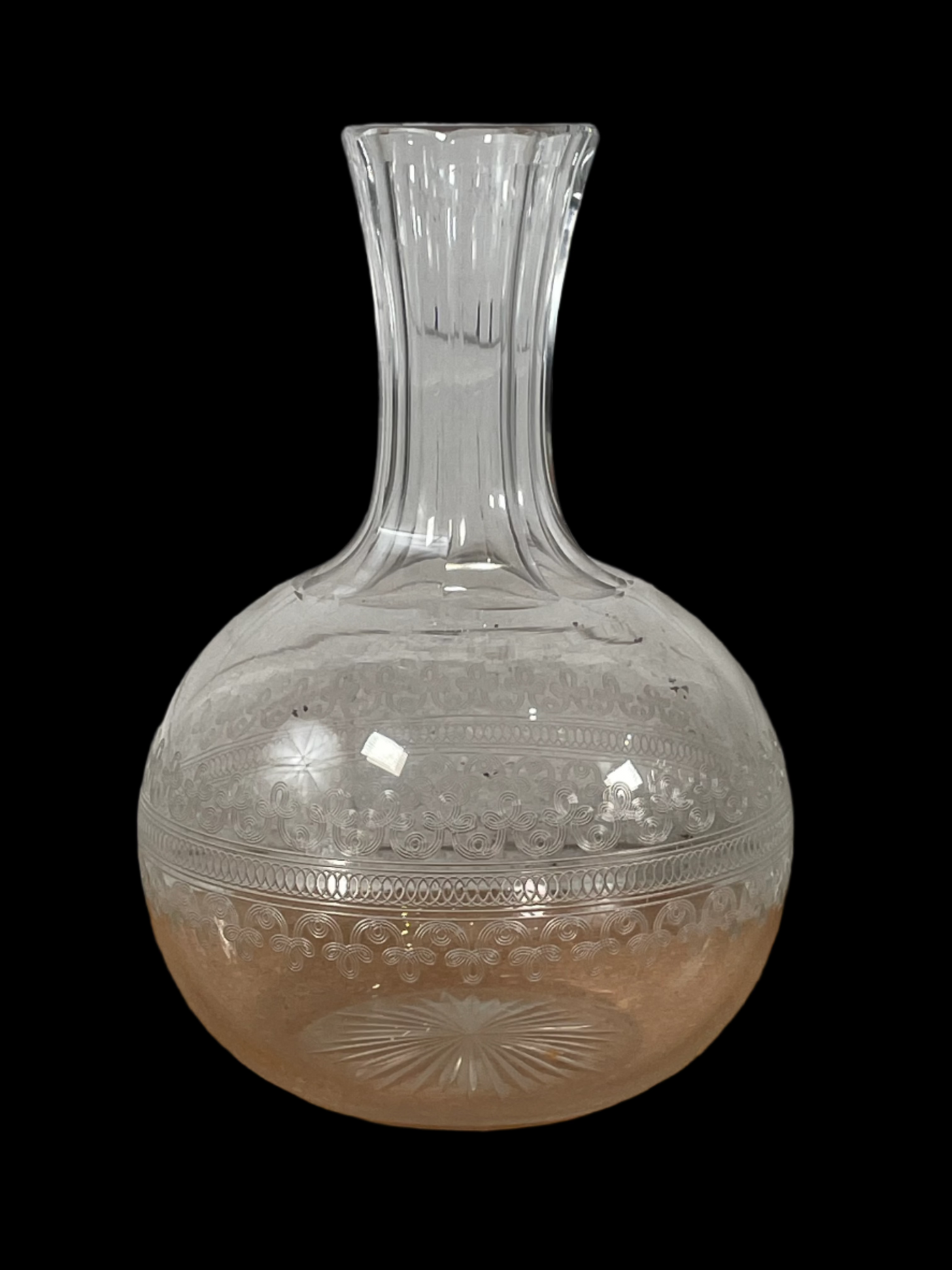 Fostoria Cloverleaf ? Decanter Carafe Water Bottle 8 3/4" Tall Etched "Abiah"