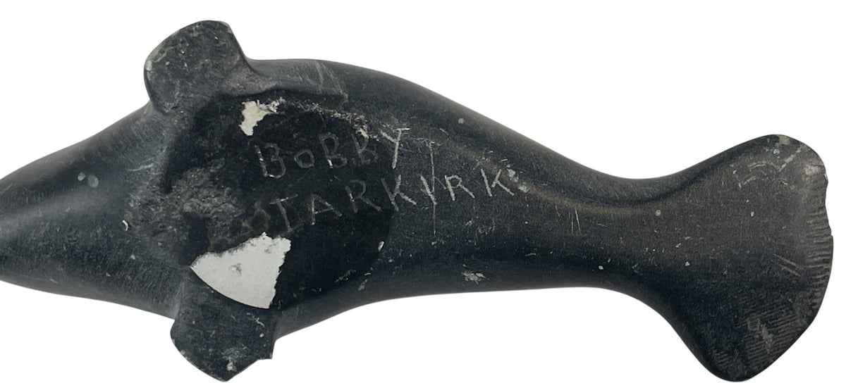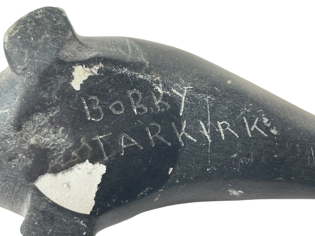 Hand-Carved Inuit Soapstone Beluga Whale – Signed by Bobby Tarkirk