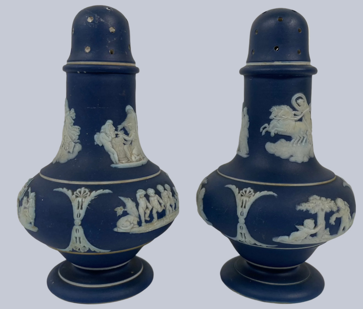 Mid-Century Wedgwood Jasperware Shakers – Blue & White Pair