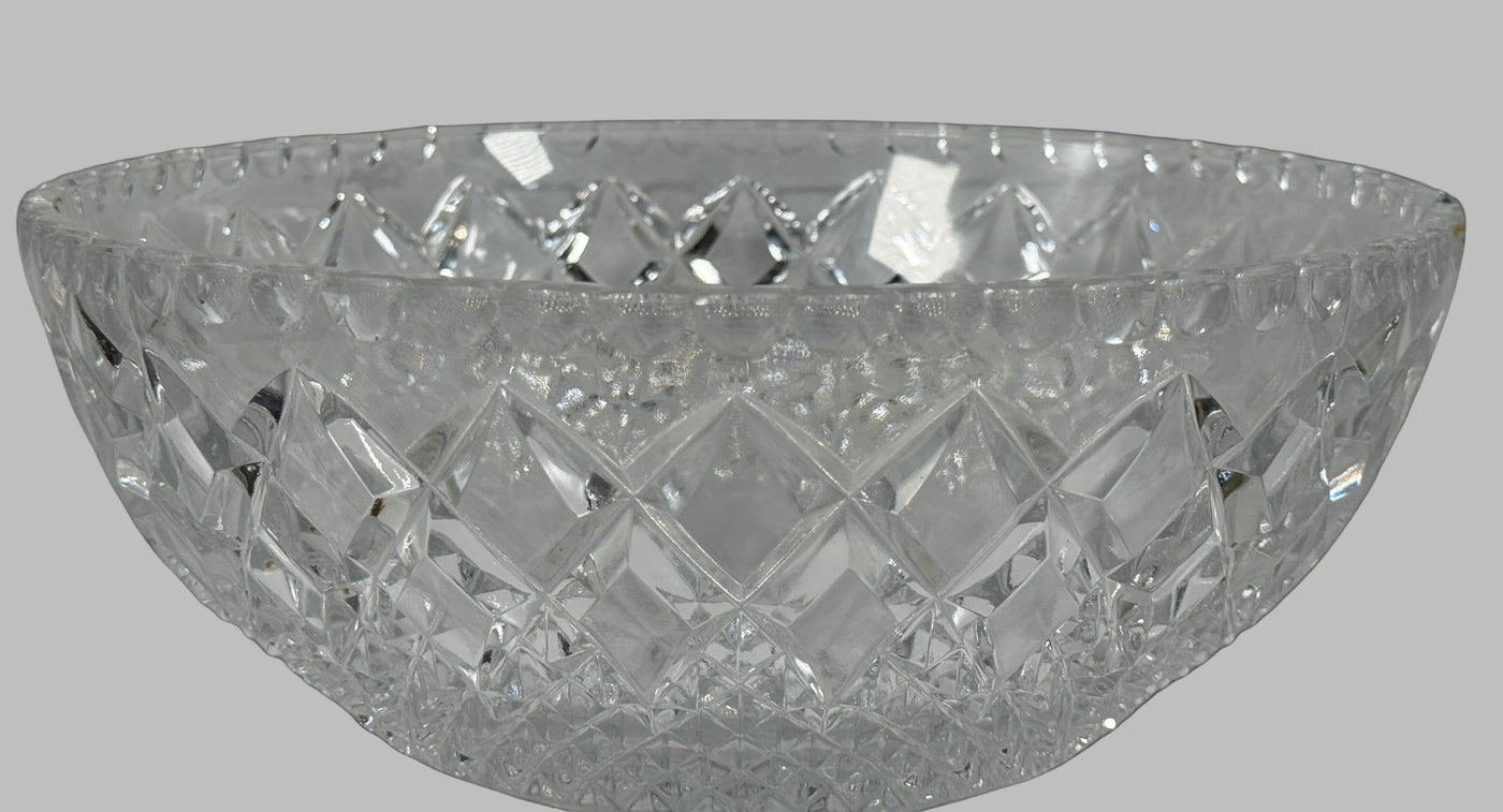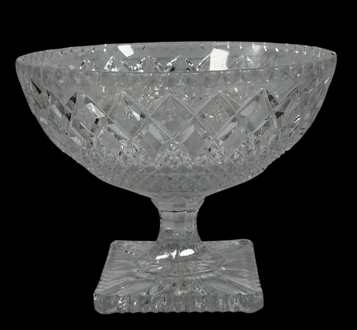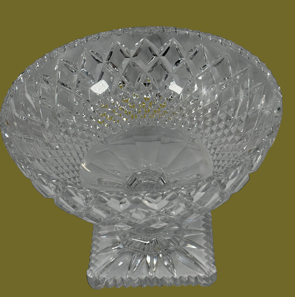 Rare Vintage Bohemian 7.5” Cut Crystal Footed Compote Bowl – Intricate Design, Heavy Glass