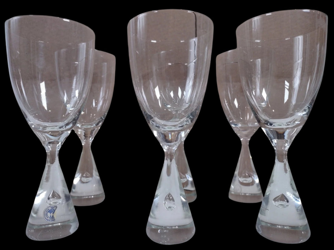 Set of 6 Princess Pokal, Wine, Kastrup Holmegaard, Denmark, Hand Made Glass W/ Box