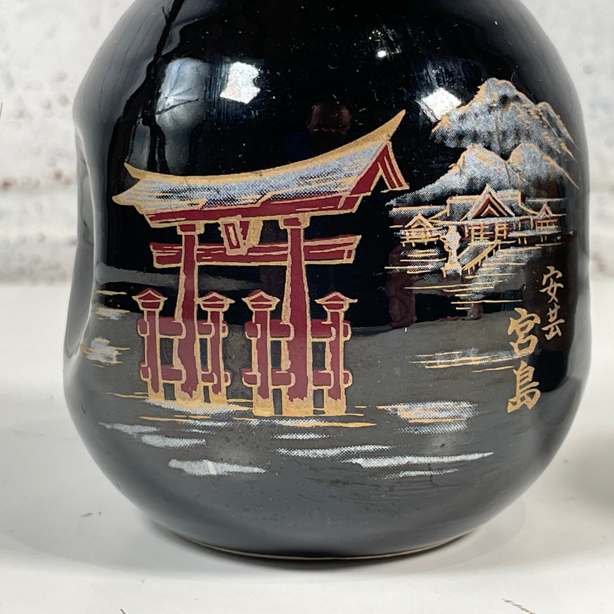 Vintage Japanese Stoneware Sake Bottle & Cup – Hand-Painted, Signed – 5”