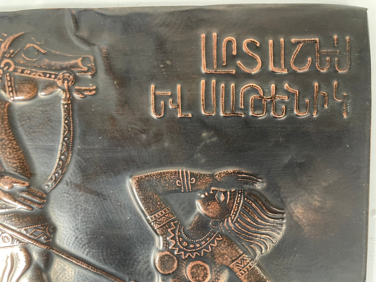 Vintage Armenian Copper Plaque — Artashes and Satenik Legend — Soviet Era Mid-20th Century