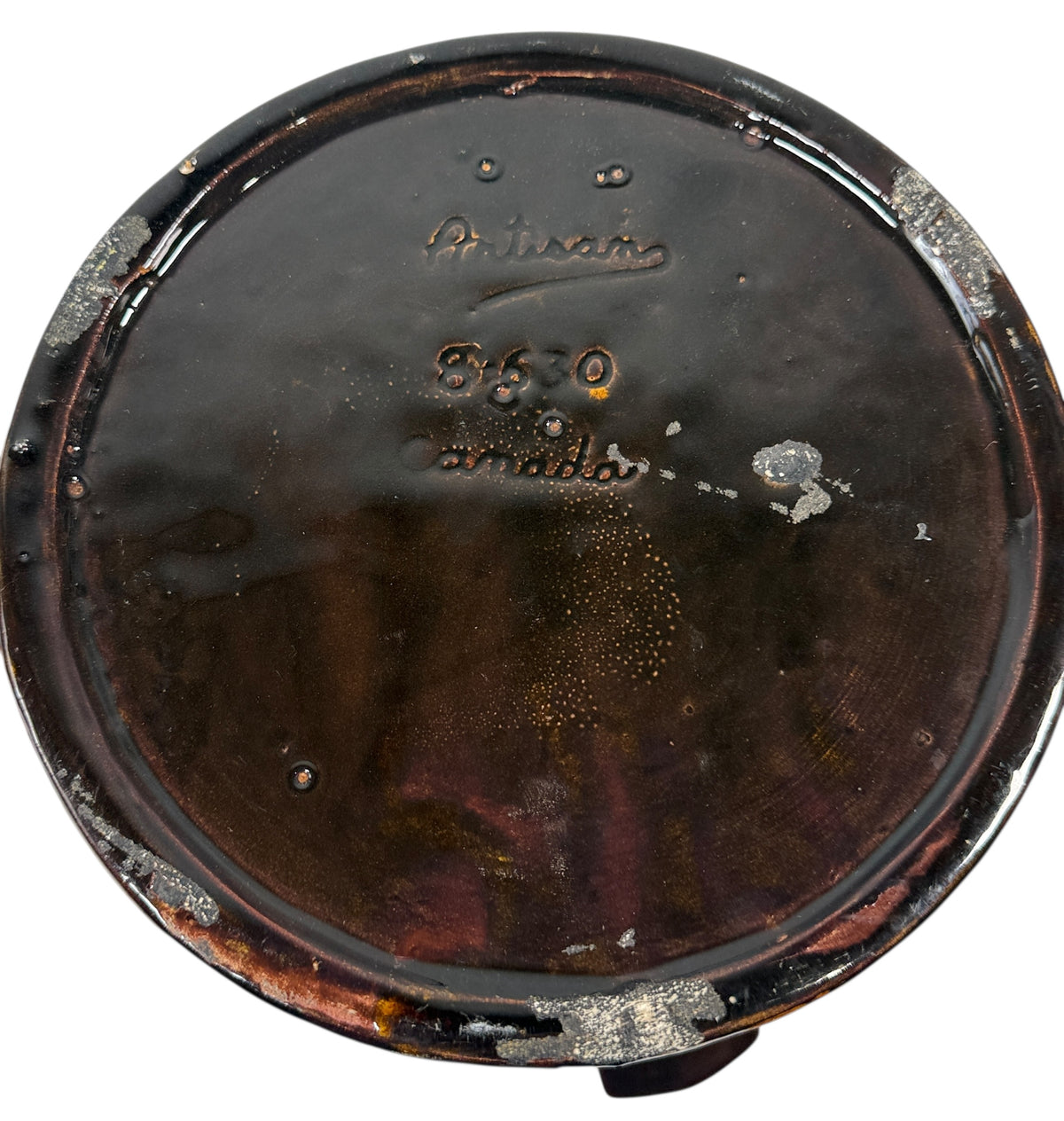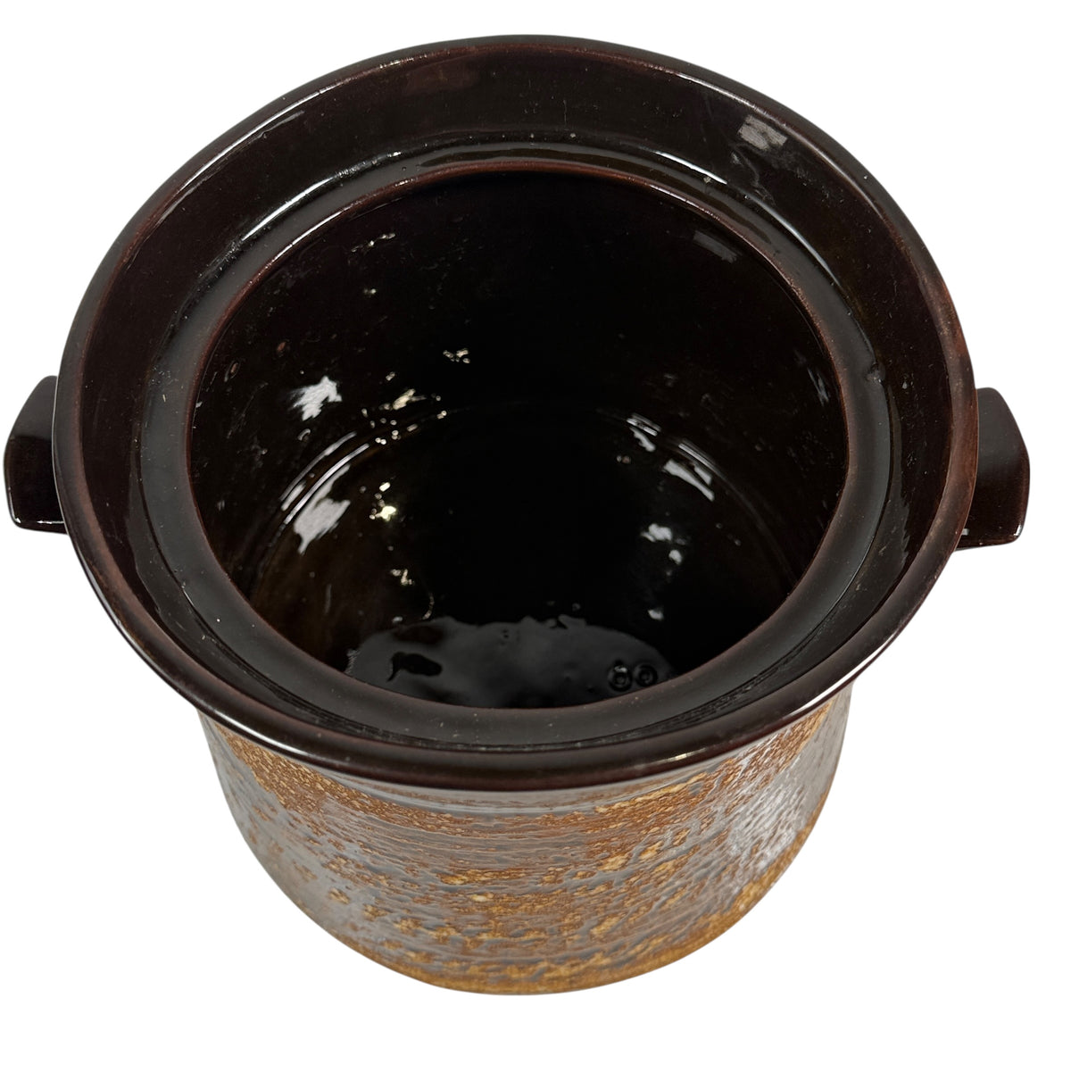 Artisan Pottery Bean Pot with Lid – Canadian Stoneware, Brown Drip Glaze, Marked 8630
