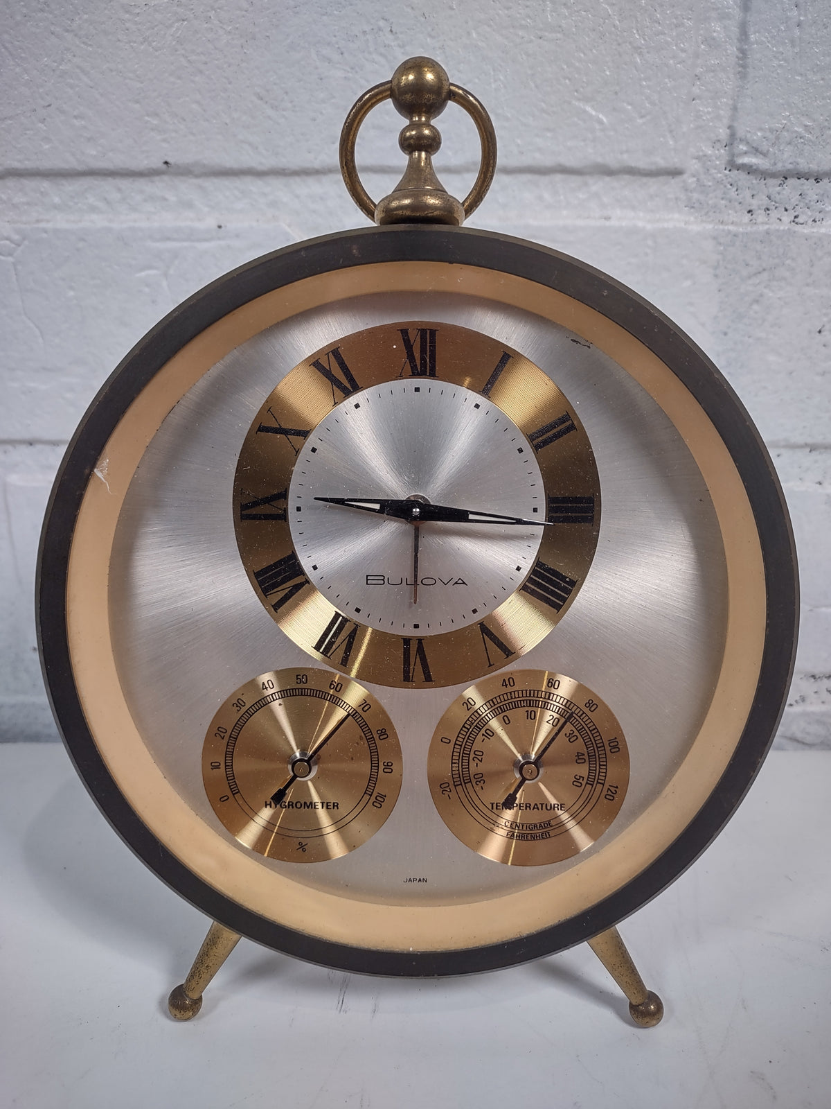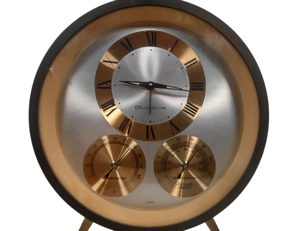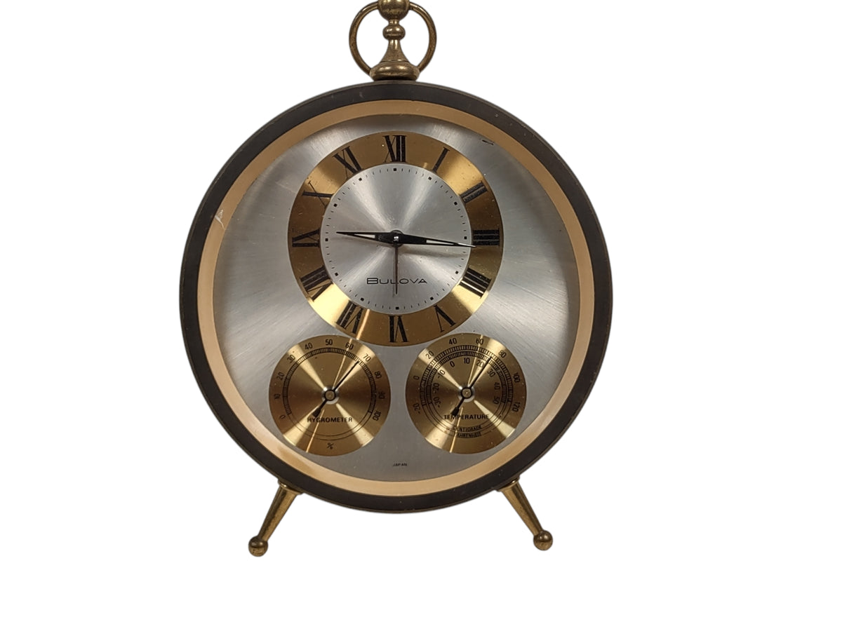 Vintage BULOVA Weather Station Clock Hygrometer Temperature Meter