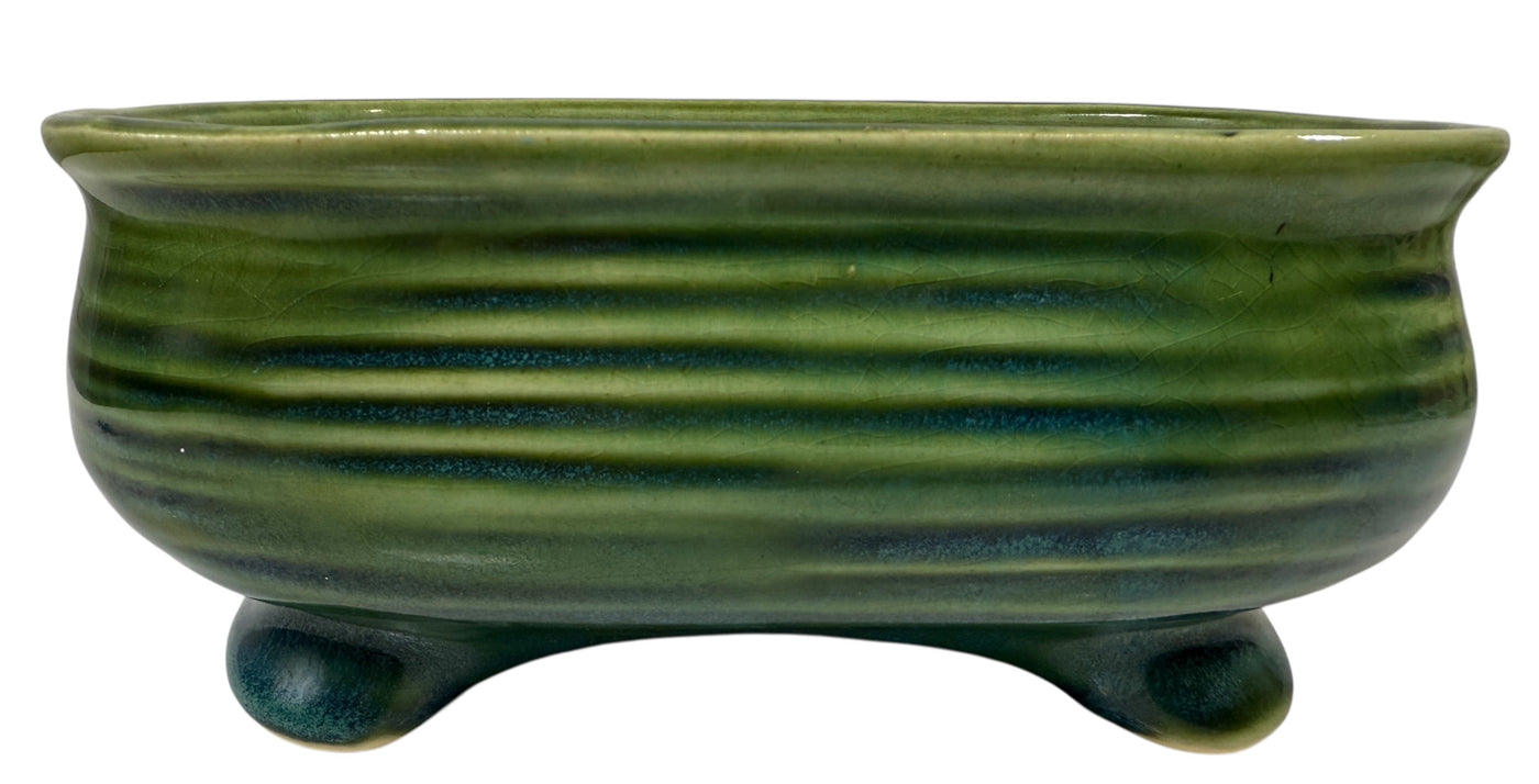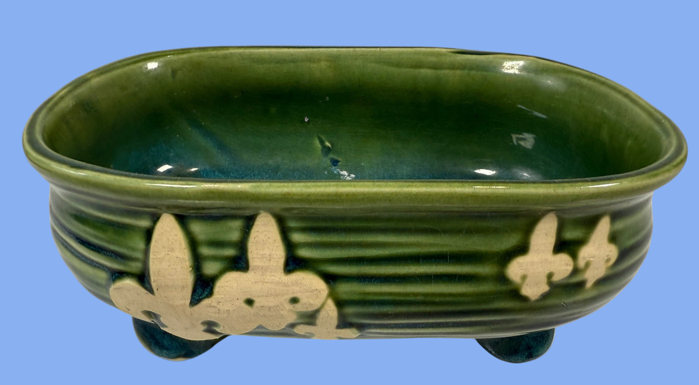 Vintage Green Ceramic Planter – Fleur-de-Lis Motif