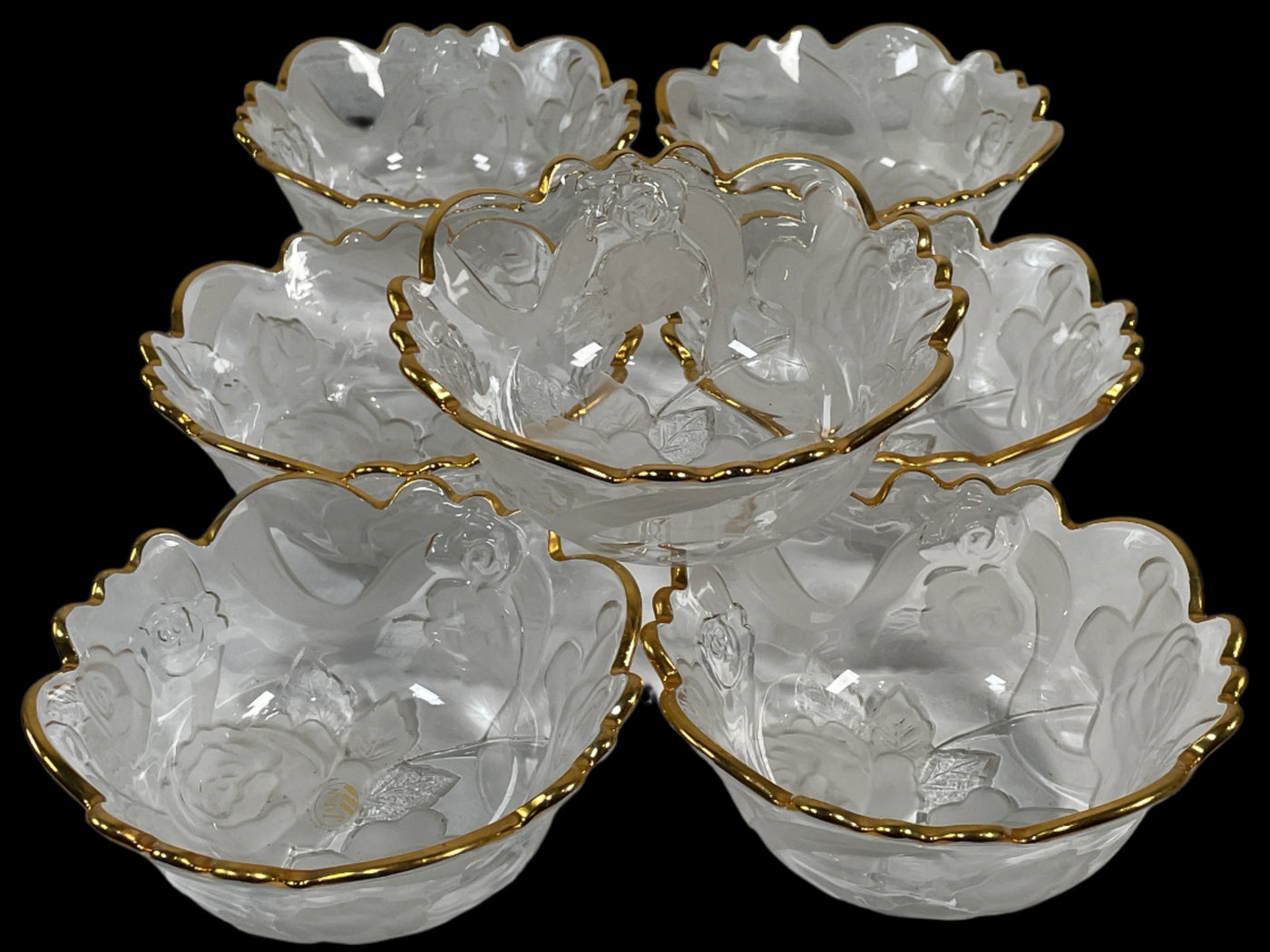 Vintage Japanese Frosted Glass Dessert Bowls – Set of 6