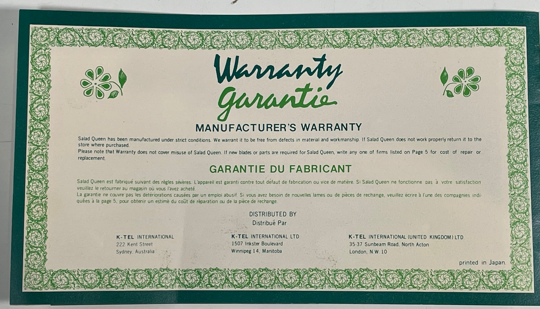 Vintage K-TEL Salad Queen Slicer – As Seen on TV – With 2 Blades – Retro Kitchen Gadget