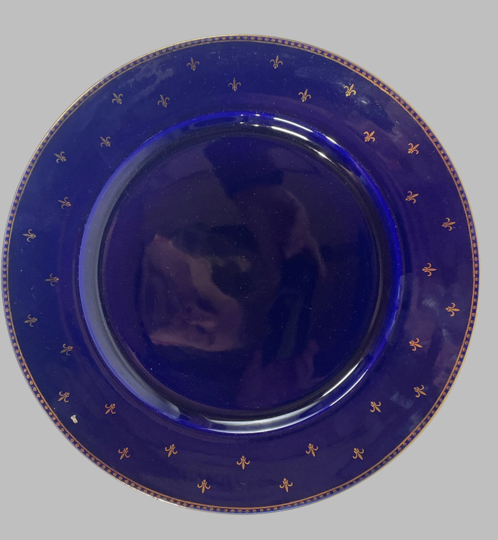 Vintage Rorstrand Cobalt Blue Fleur de Lis Porcelain 13.” Plate