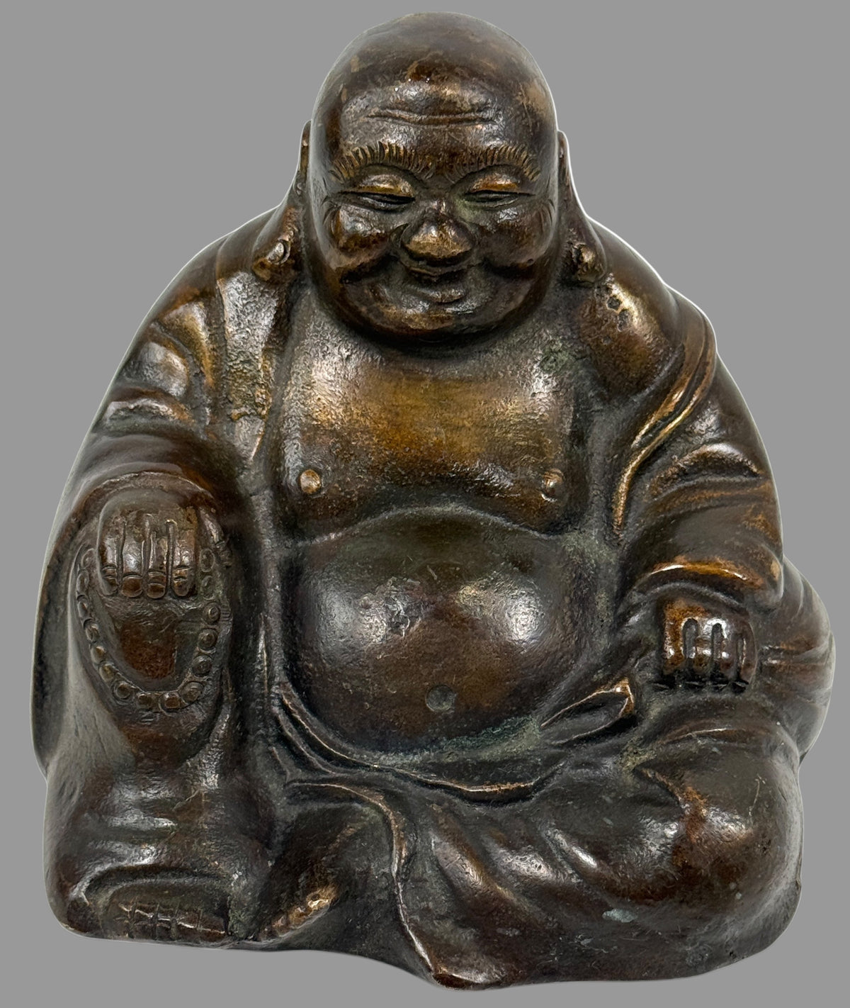 Vintage Solid Bronze Laughing Buddha Statue – 4½″ Tall, 1.44 kg