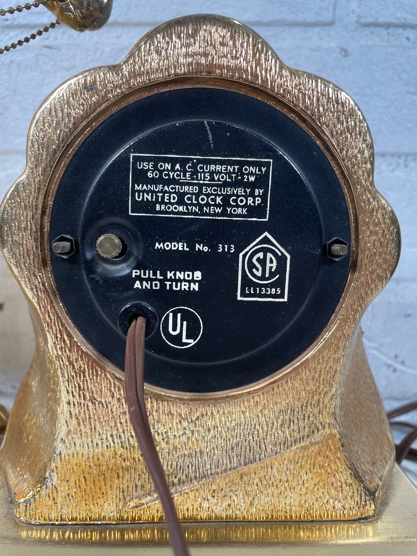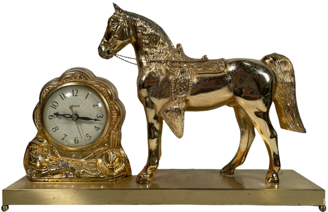 Vintage UNITED Horse Clock Brass Tone Metal Base, Works Excellent